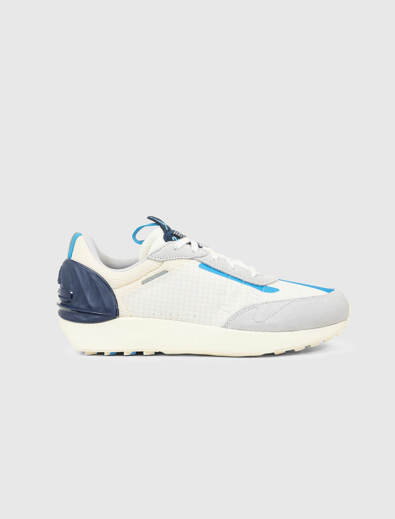 Low top sneakers. Suede overlays around the toe, and eyelet panels. Synthetic TPU heel counter insert. Fused nylon toe box, and side panels. Mesh back panel. Front lacing. Nylon tongue with a suede tab stitched on the front. Foam midsole. Rubber outsole. – Nylon, suede, and polyester upper SKU: DM2424-141