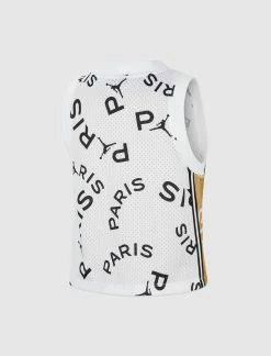 Nylon mesh jersey. All over print graphic. Chenille patch on the left chest. Sleeveless. Crewneck collar. Overlaid tape down both sides. – 100% Polyester **SPECIAL RELEASE: Our special release sneakers are considered a final sale and only available for domestic shipping. [NOT ELIGIBLE FOR RETURN, EXCHANGE, OR CANCELLATION] SKU: CU5707-100