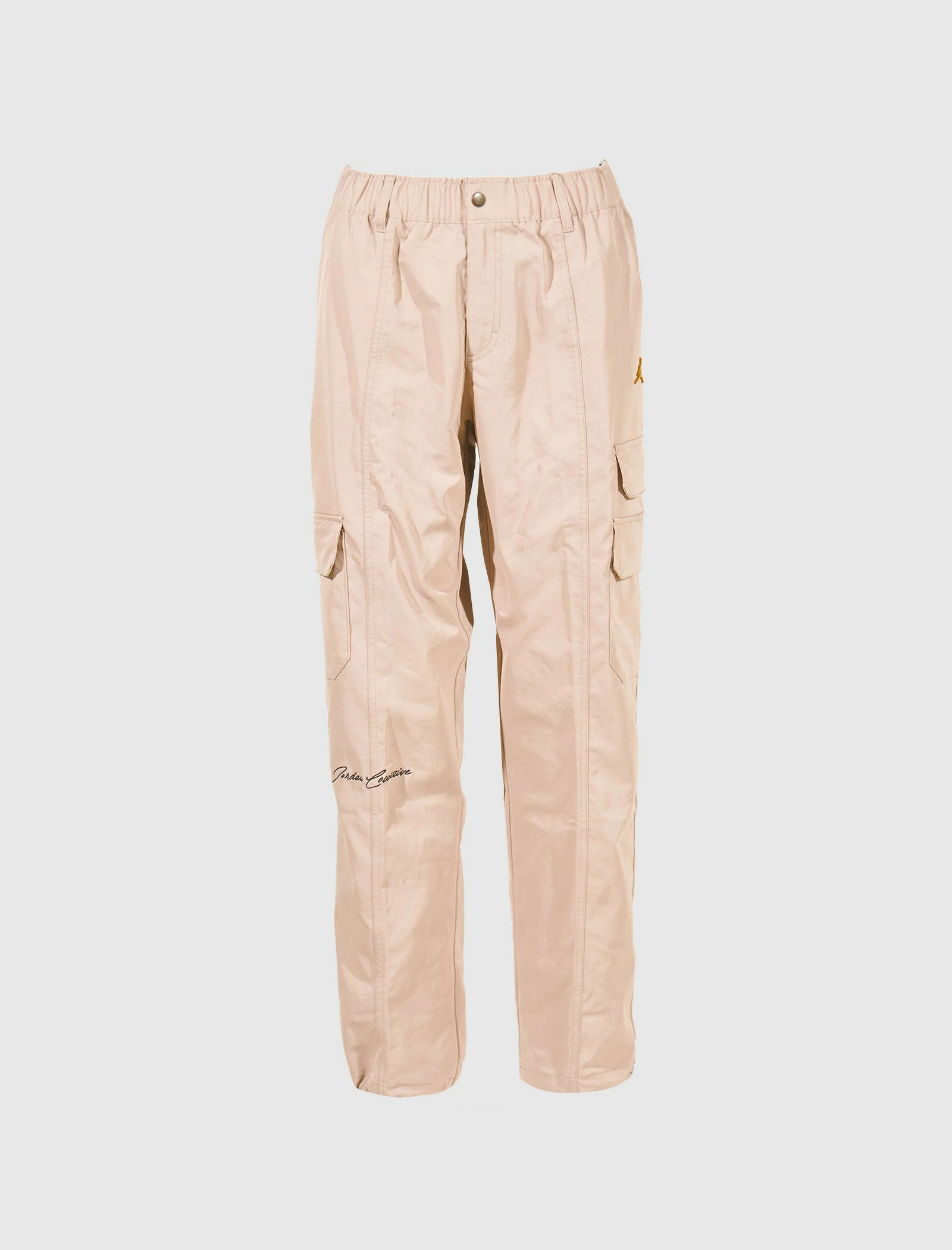 Cargo pants. Seven pockets. Embroidered logo at side. Embroidered logo text at front. Drawstring pulls at hems. – 100% Polyester SKU: DV1383-250