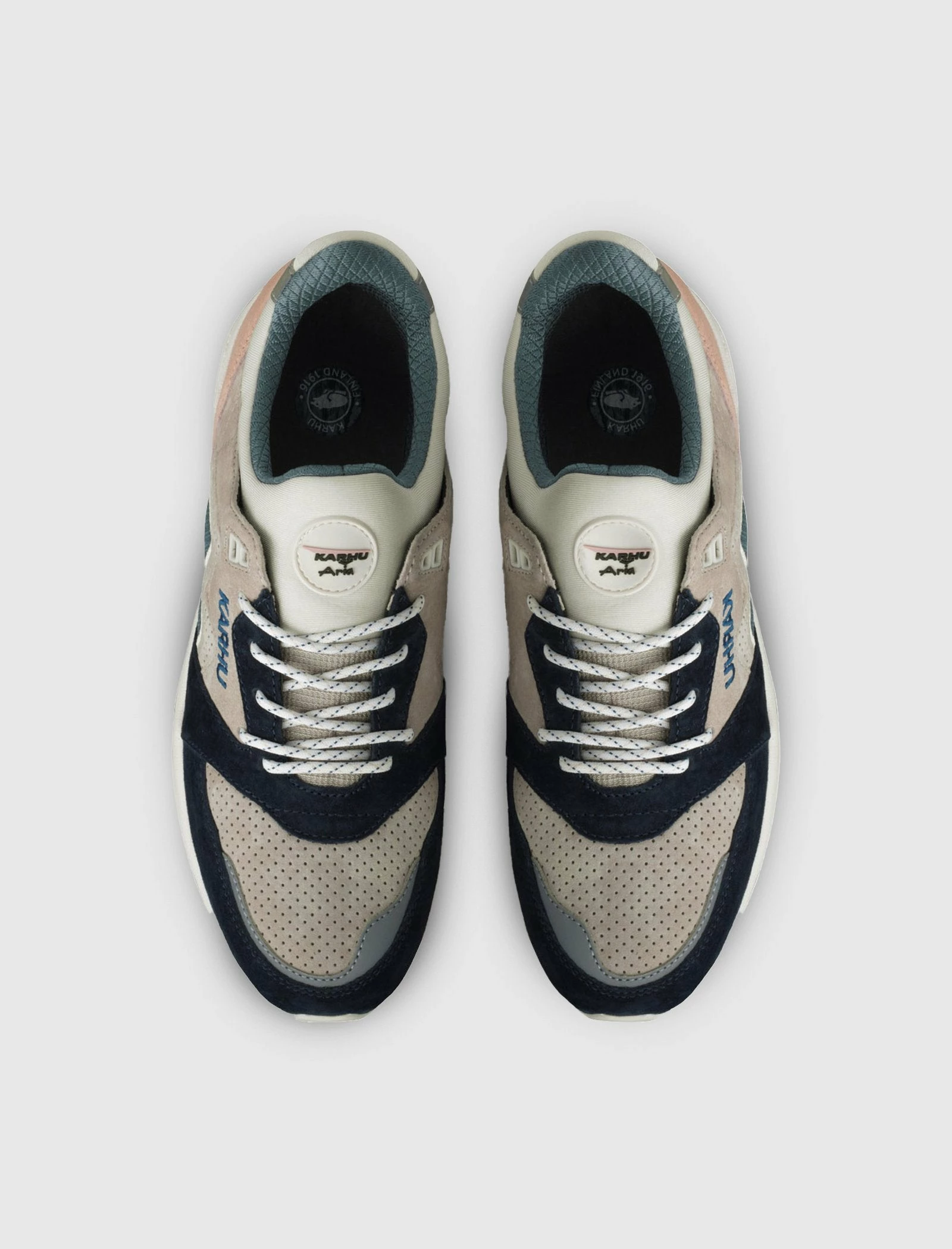 Low top sneakers. Suede upper. Suede overlays around the toe, side panels, and heel. Perforated suede toe box, side panels. Embroidered logo on the side panels. Front lacing. Foam midsole. Rubber outsole. – Suede upper SKU: F803080