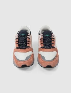 Low top sneakers. Polyester mesh upper. Suede overlays around the toe, eyelet panels, and heel counter. Suede side panels. Padded leather collar. Reflective accents around the toe. Front lacing. Padded mesh tongue. EVA foam midsole. Rubber outsole. – Suede, and polyester upper. SKU: F803091