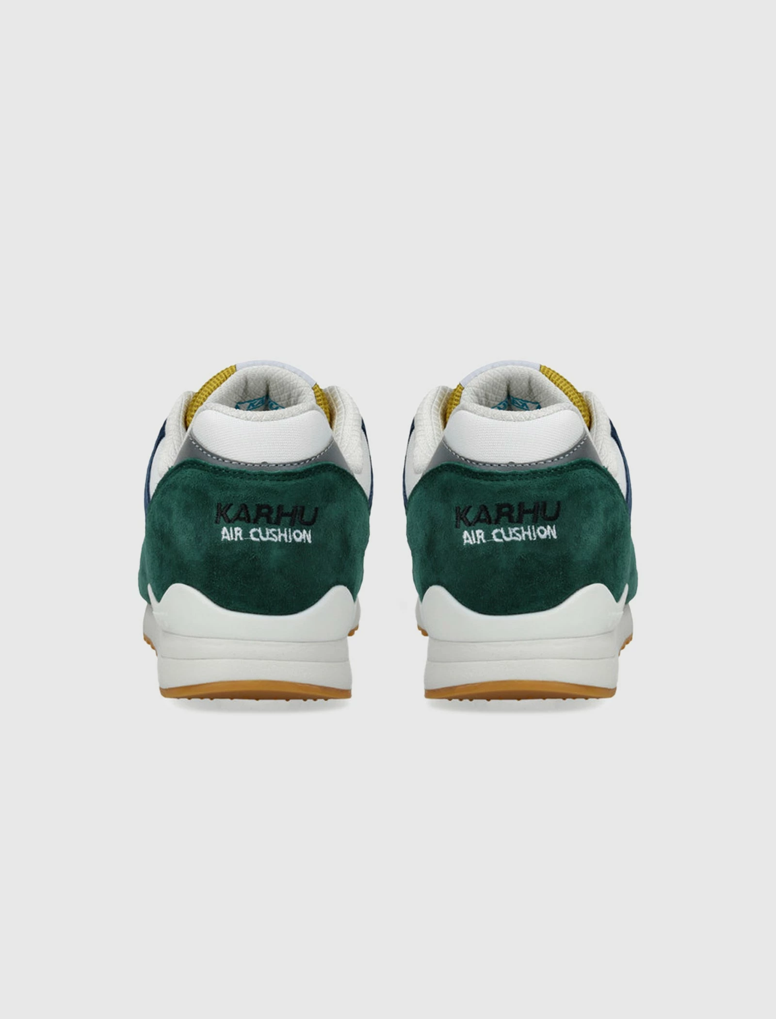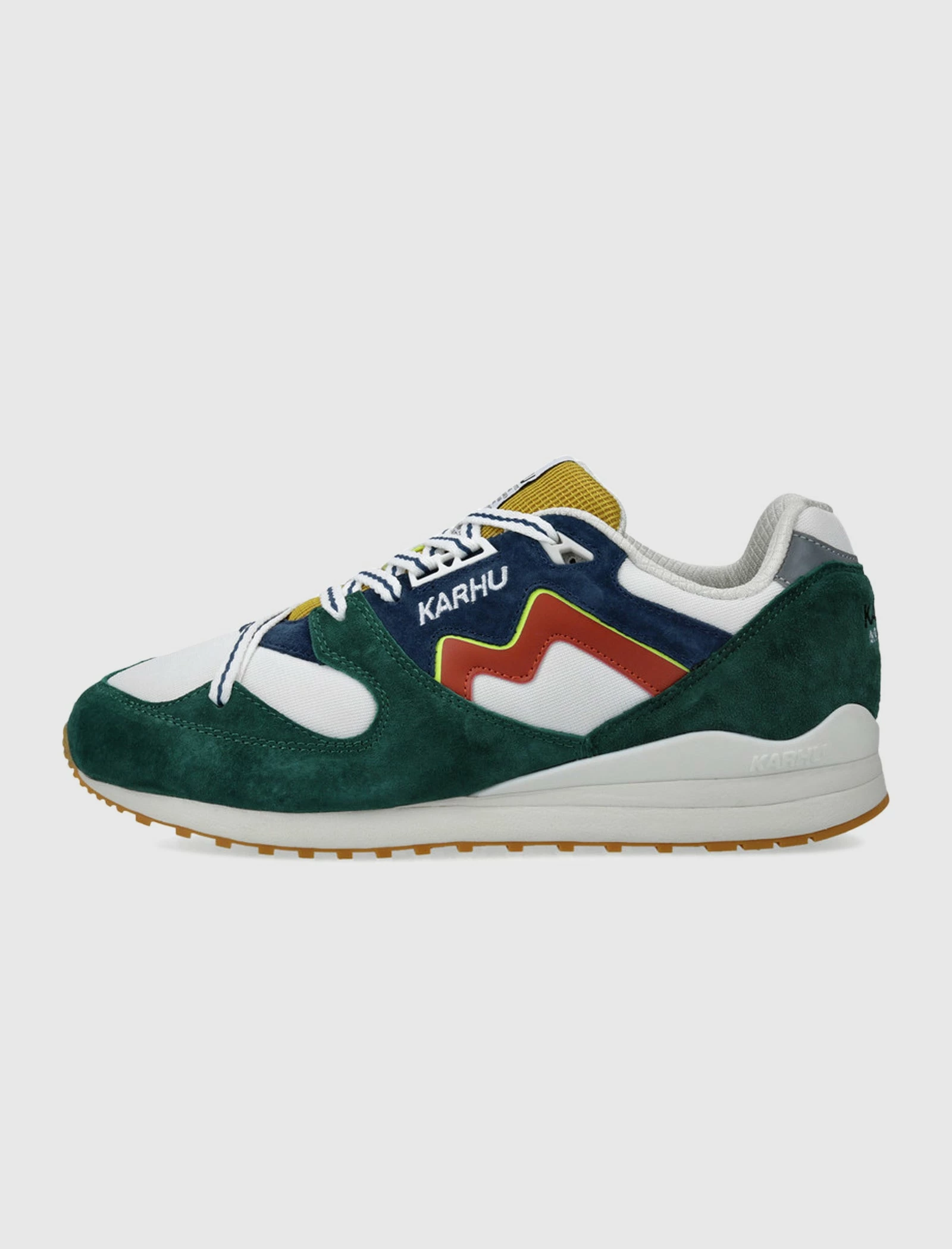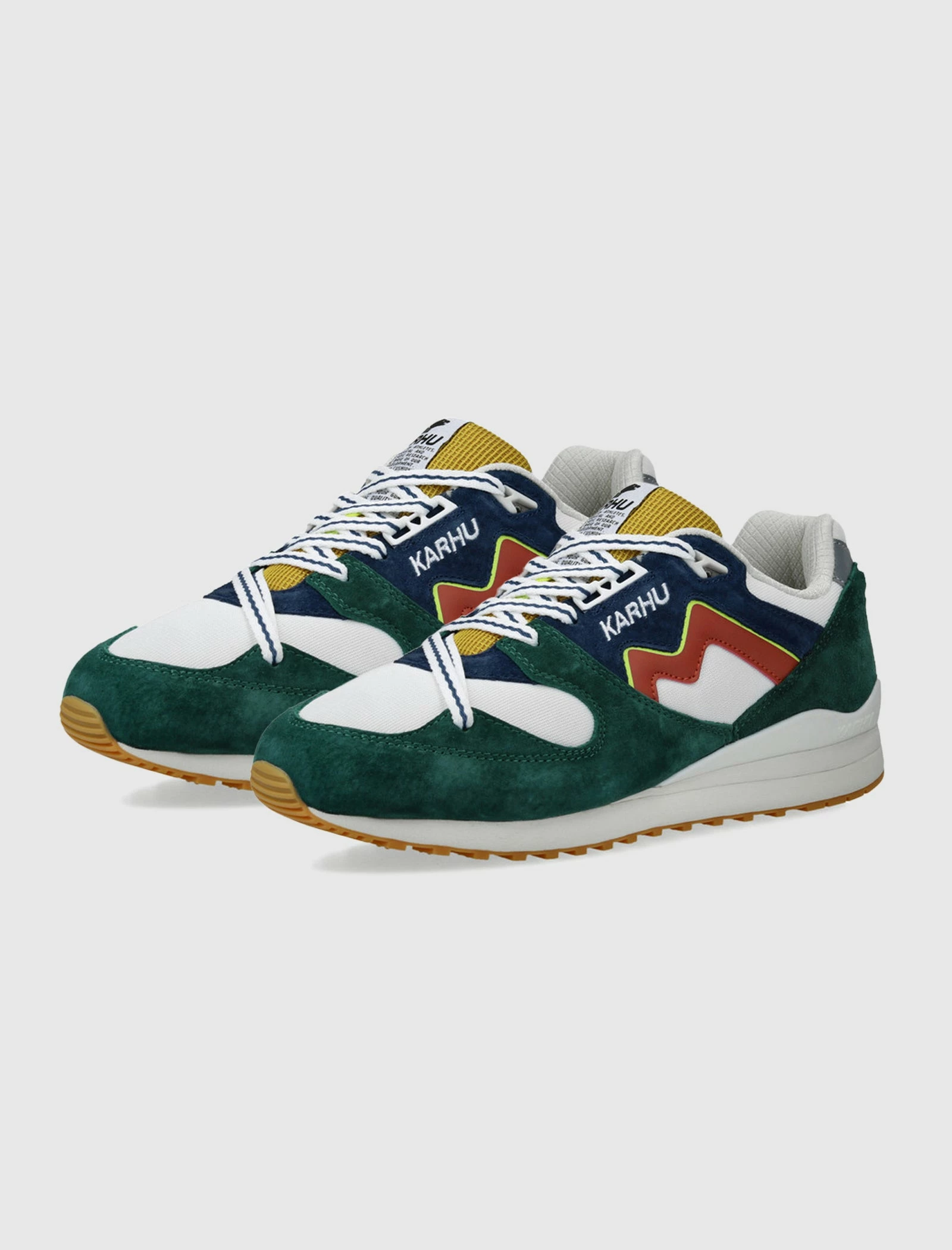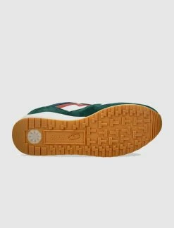 Low top sneaker. Suede upper. Mesh toe box. Suede overlays around the toe, eyelets, and heel. Front lacing. Embroidered logo on the back, and side beneath the eyelets. Foam midsole. Rubber outsole. – Suede upper SKU: F802661