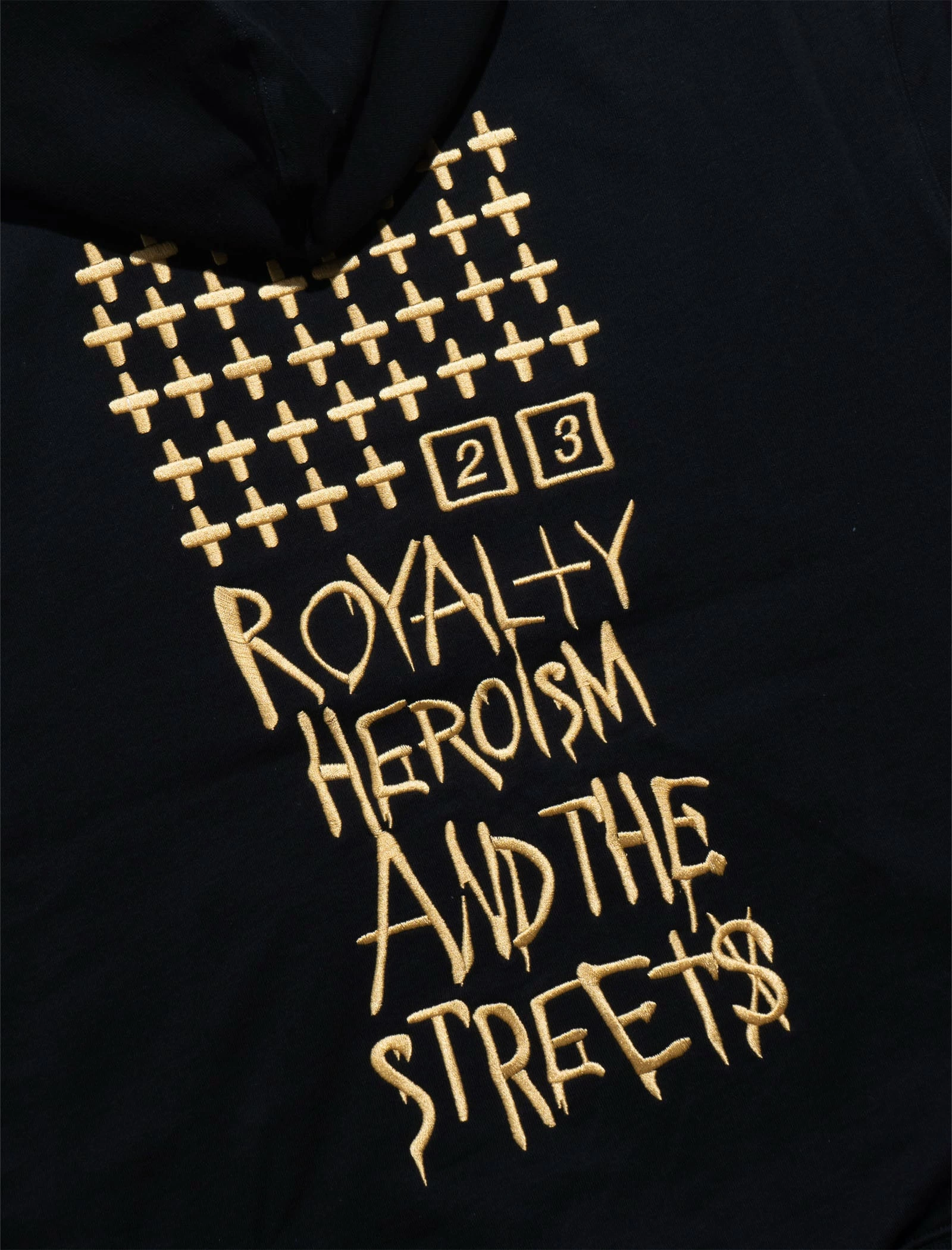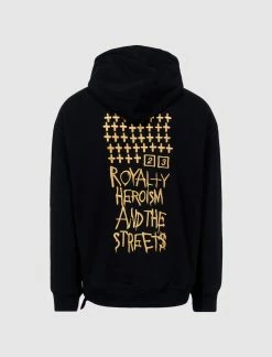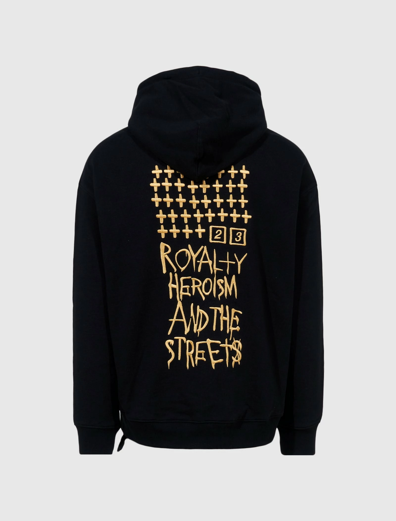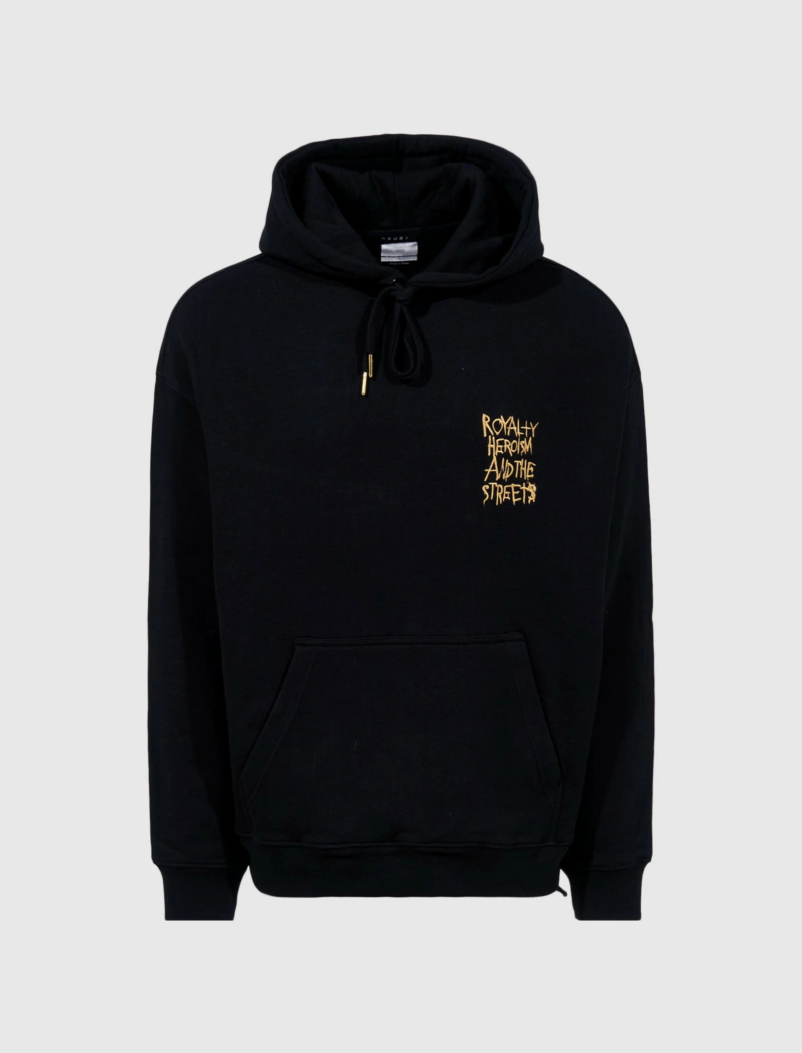 Pullover cotton hoodie. Adjustable drawstring hood. Embroidered text at chest. Kangaroo pocket at front. Embroidered text and graphic at back. Ribbed cuffs and hem. – 100% Cotton SKU: MRHC22FL01
