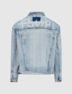 Denim jacket. Lightwash. Folded collar. Button down front closure. 2 flap pockets at the front. 2 side welt pockets. Button cinches on the back of the waist. Logo on the back. Buttoned cuffs. – Cotton SKU: 5000007147-DEN