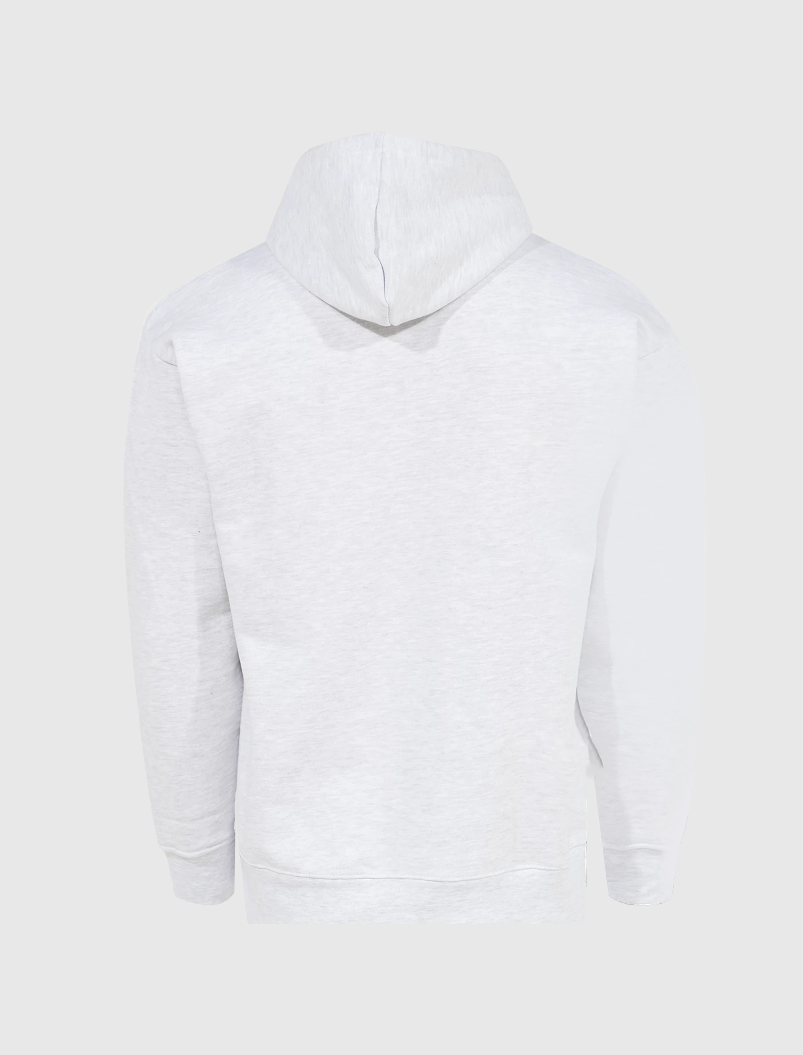 Pullover hoodie. Adjustable drawstring hood. Graphic logo text at chest. Kangaroo pocket at front. Ribbed cuffs and hem. – 100% Cotton SKU: 397000194-ASH