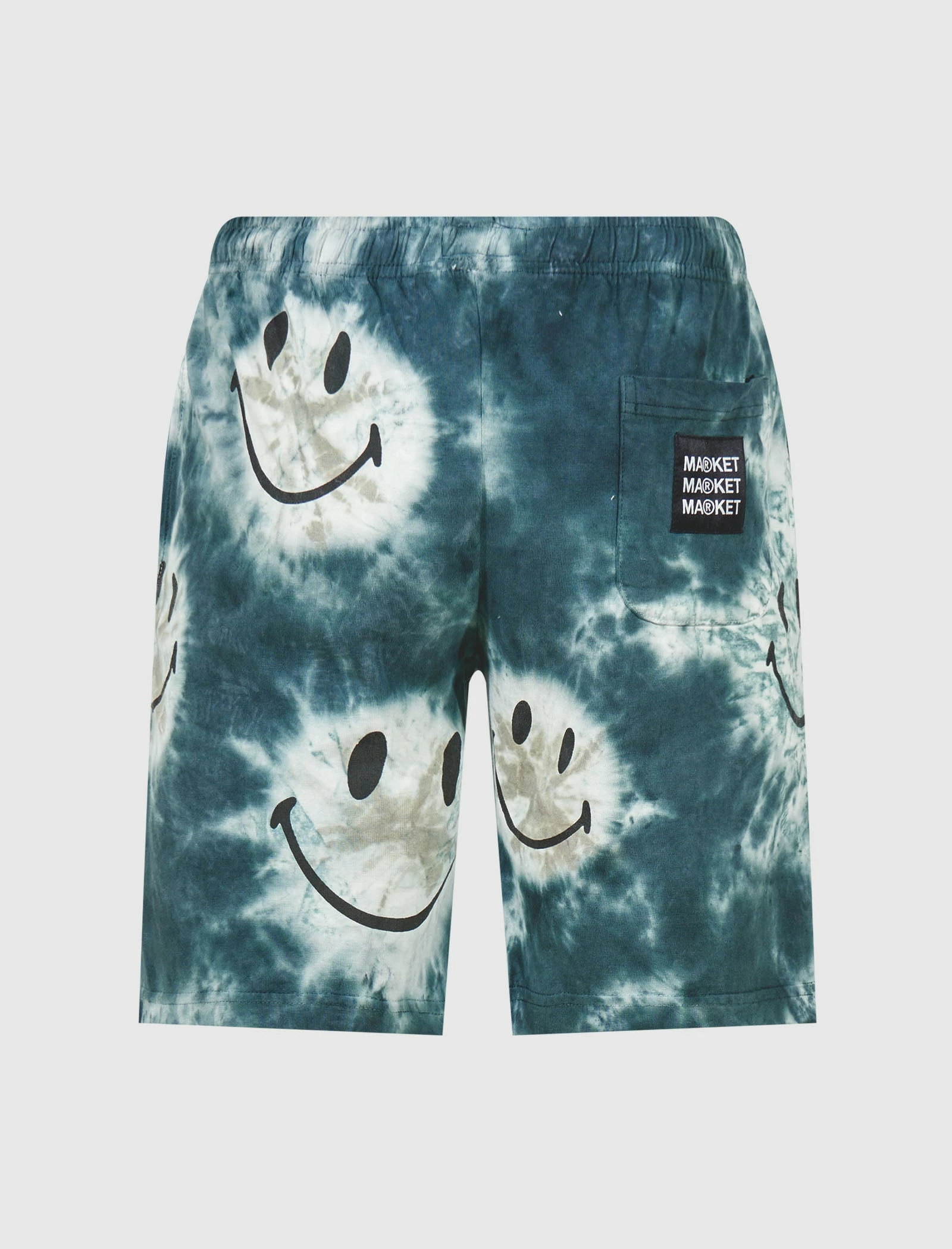 Tie-dye shorts. Elasticized waistband. Two pockets at sides. Single pocket at back. Graphic smily face prints throughout. – 100% Cotton SKU: 395000526