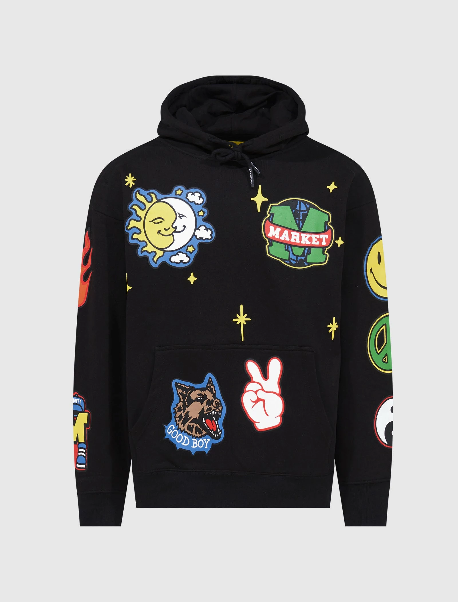 Pullover hoodie. Adjustable drawstring hood. Graphic print and logo text at chest and back. Graphic prints throughout. Kangaroo pocket at front. Ribbed cuffs and hem. – 100% Cotton SKU: 397000330