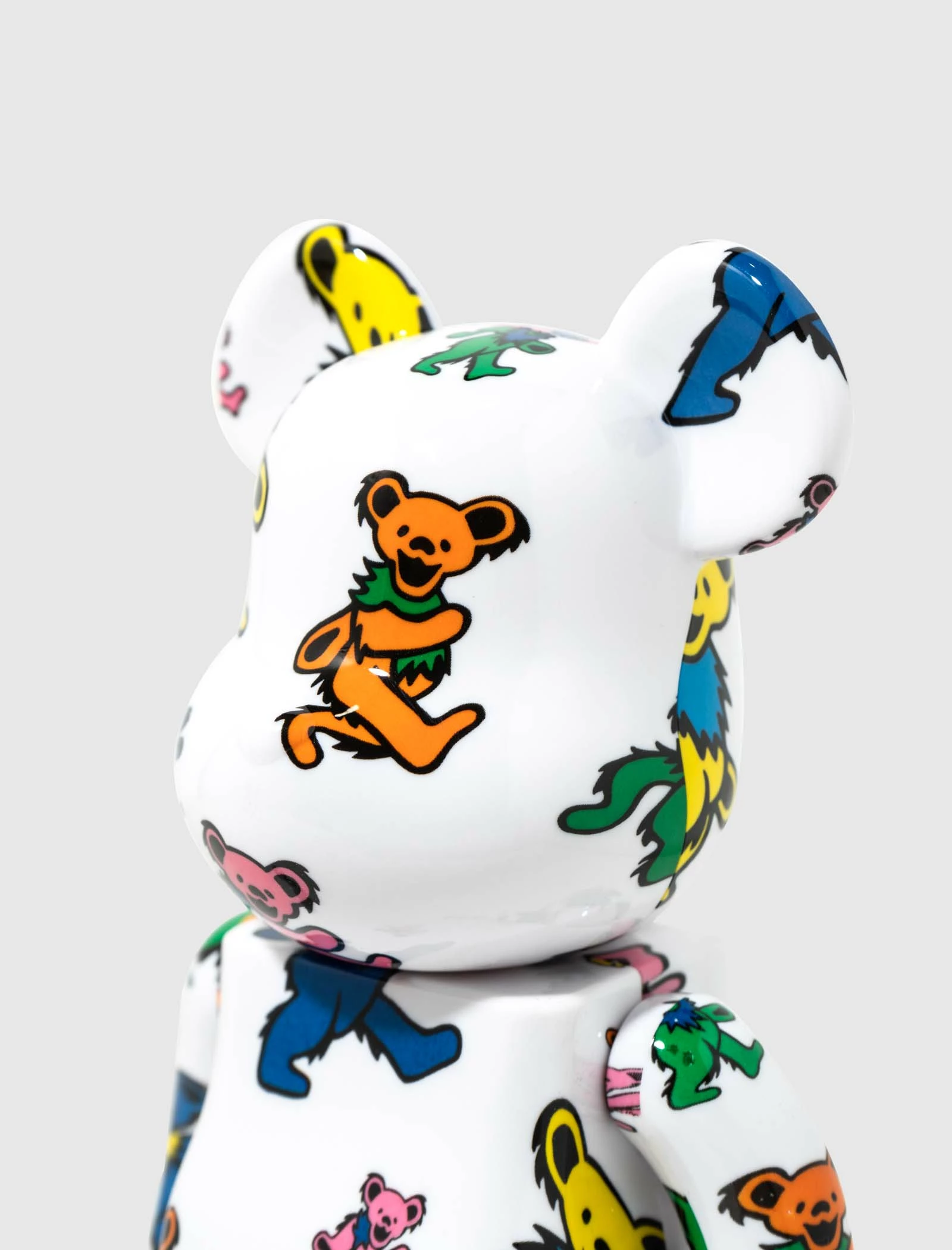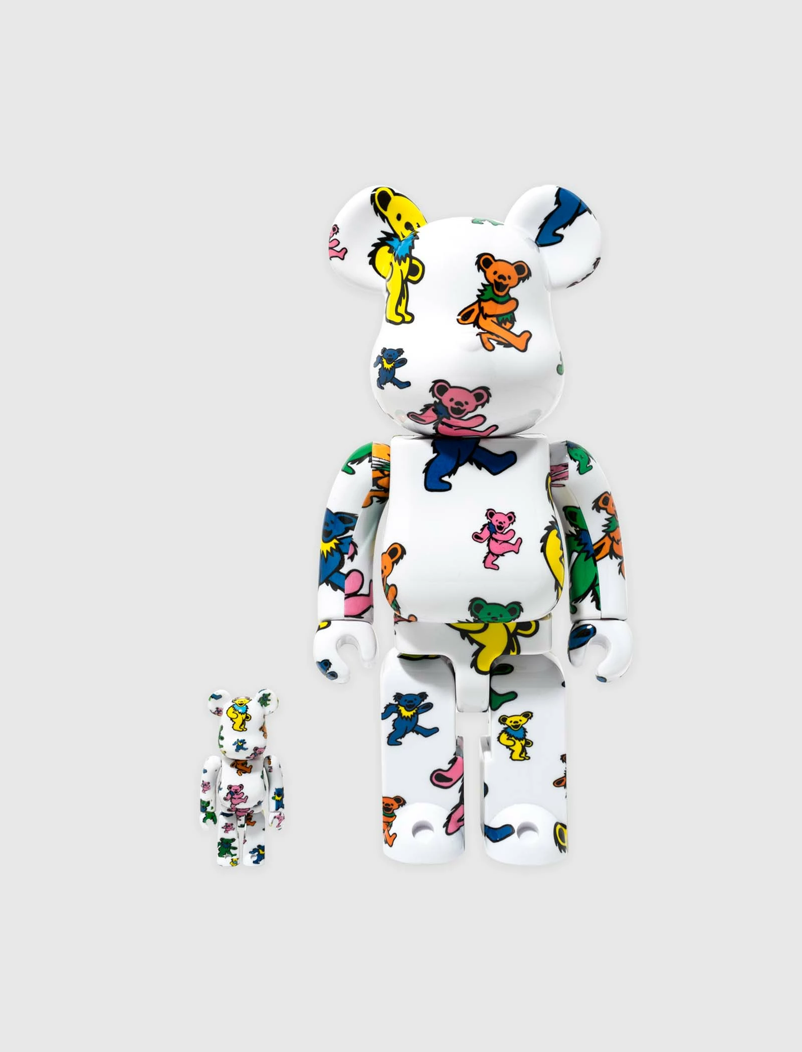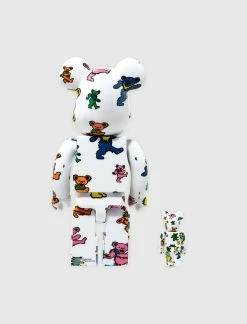 Grateful Dead Dancing Bear 100% + 400% Be@rbrick set. Vinyl figures. 400% figure is approximately 11 inches tall, and 100% figure is approximately 3 inches tall. Graphic printed all throughout. – Vinyl SKU: 4530956600635