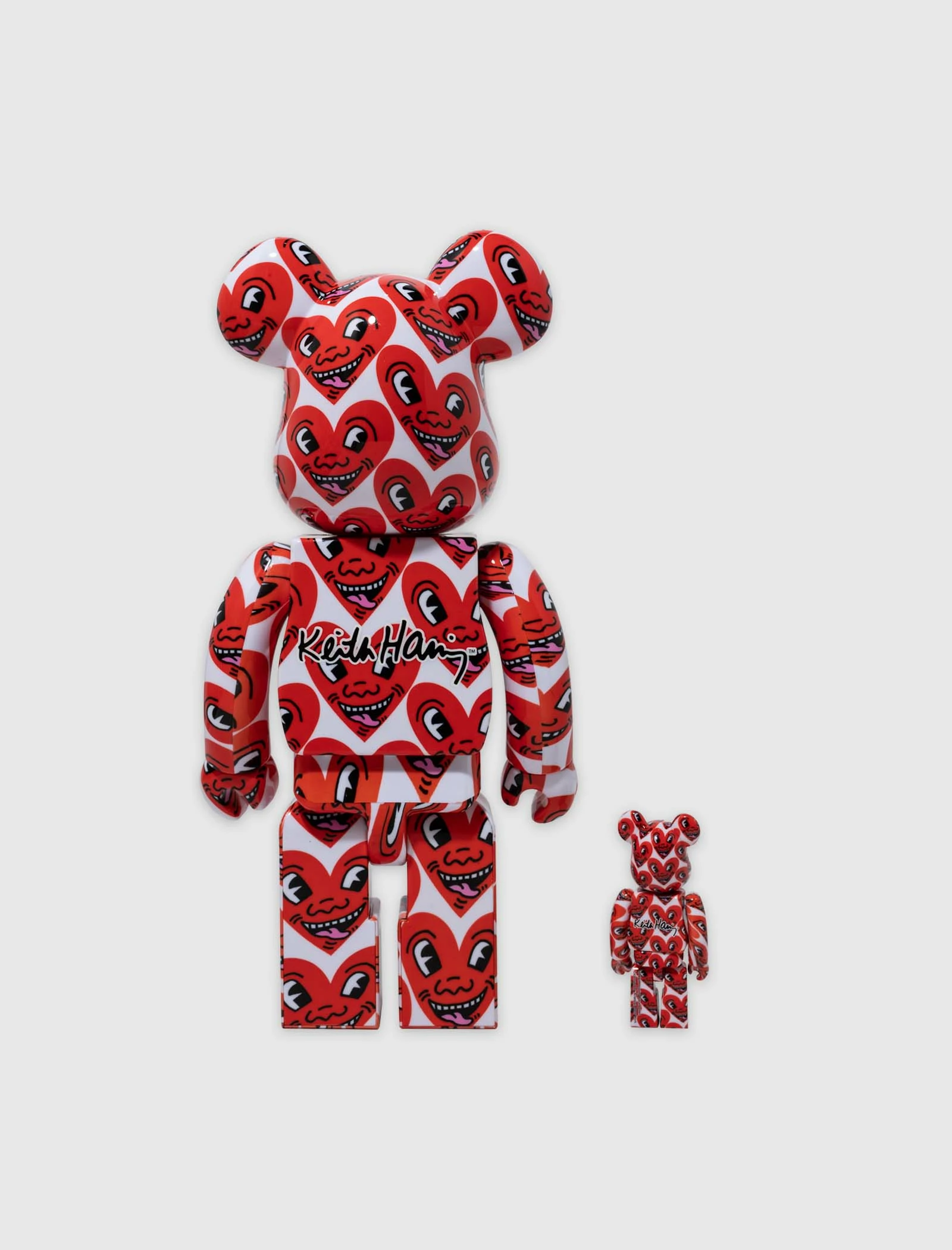 Keith Haring 400% and 100% Be@rbrick set. Vinyl figures. 400% figure is approximately 11 inches tall, and 100% figure is approximately 3 inches tall. Graphic printed all throughout. – Vinyl SKU: 4530956588520