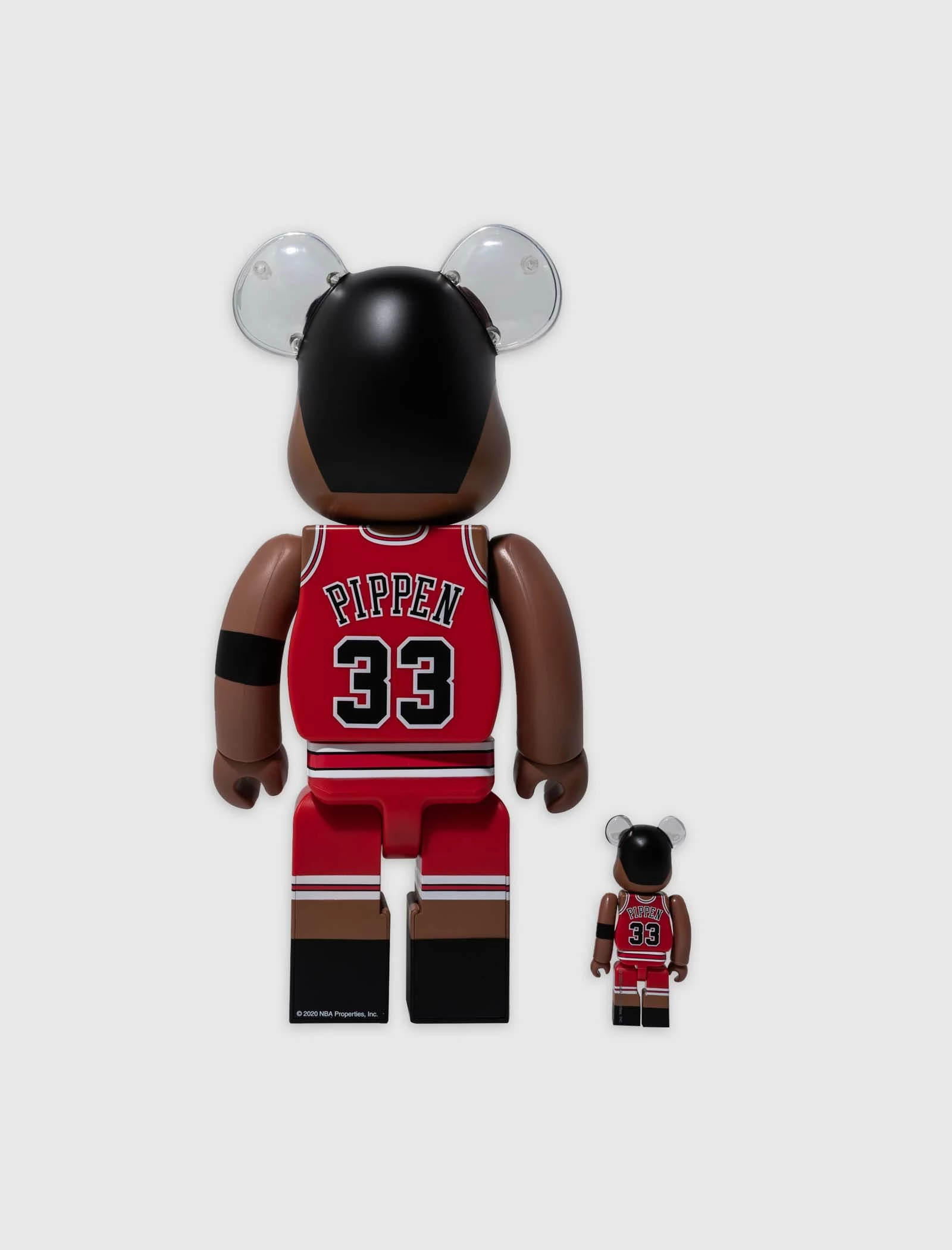Scottie Pippen 400% and 100% Be@rbrick set. Vinyl figures. 400% figure is approximately 11 inches tall, and 100% figure is approximately 3 inches tall. Graphic printed all throughout. – Vinyl SKU: 4530956587981