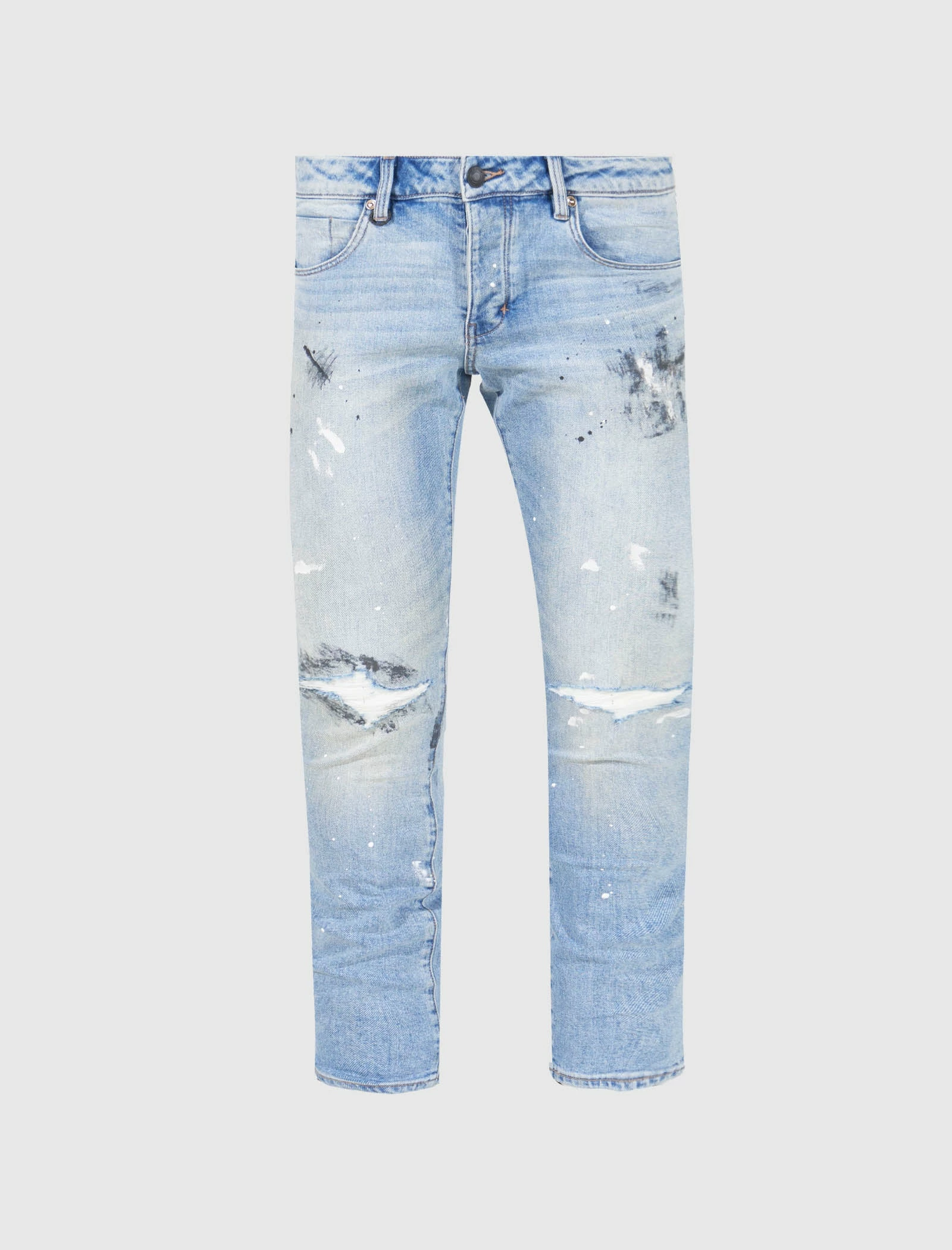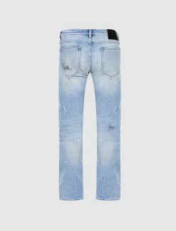 Light-wash denim jeans. Five-pockets. Distressed detail at knees. Splattered paint detail throughout. Zip-fly closure at front. – 99% Organic Cotton, 1% Elastane SKU: 34349B