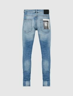 Medium-wash jeans. Five-pockets. Contrast stitching throughout. Button-fly closure at front. – 99% Cotton, 1% Elastane SKU: 34292