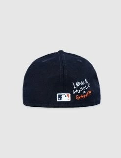 Woven fitted cap. Embroidered MLB team at front. Flat brim. Embroidered text, prints and logos throughout. – 100% Polyester SKU: 60243676