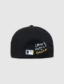 Woven fitted cap. Embroidered MLB team at front. Flat brim. Embroidered text, prints and logos throughout. – 100% Polyester SKU: 60243667