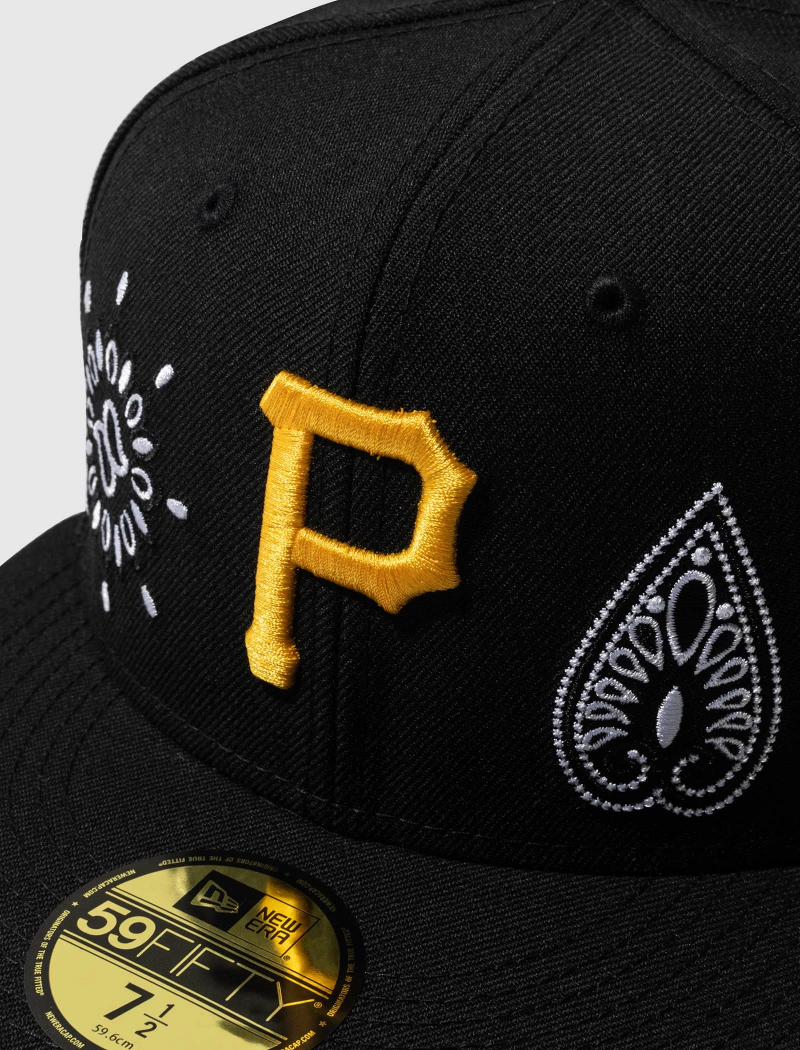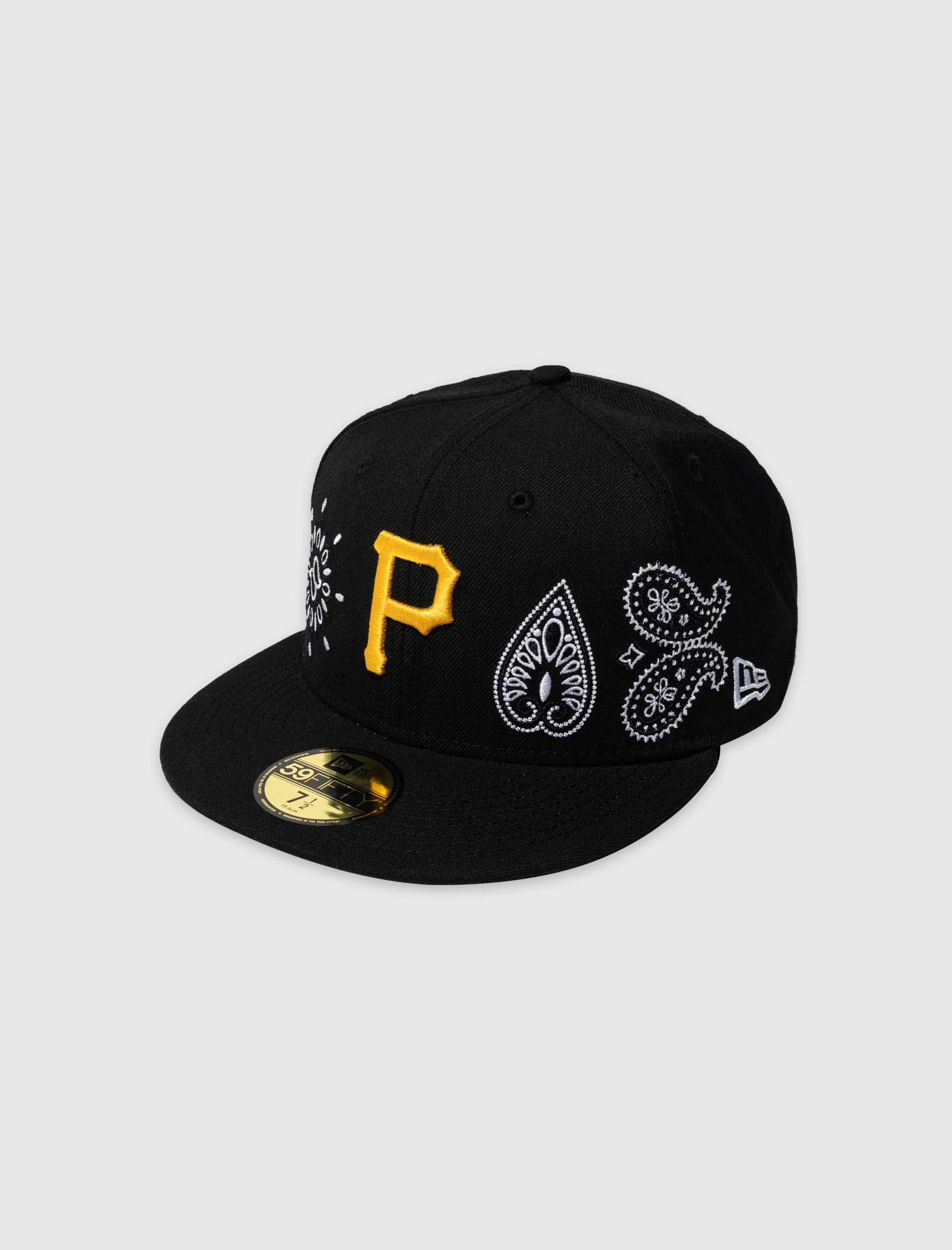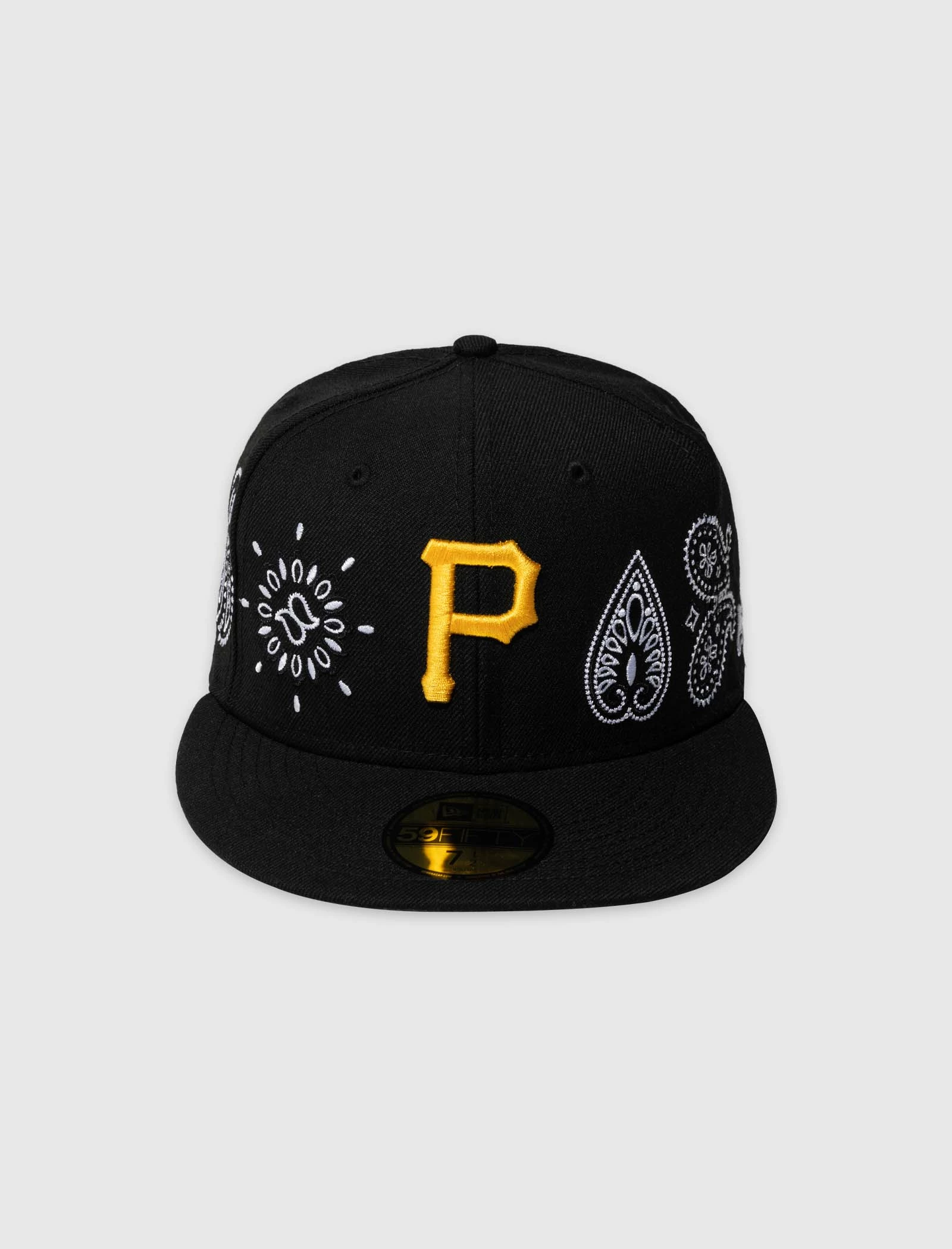 Fitted baseball cap. Flat brim. Embroidered Pittsburgh Pirates logo and paisley prints at front. Embroidered logos at side and back. – 100% Polyester SKU: 60216792