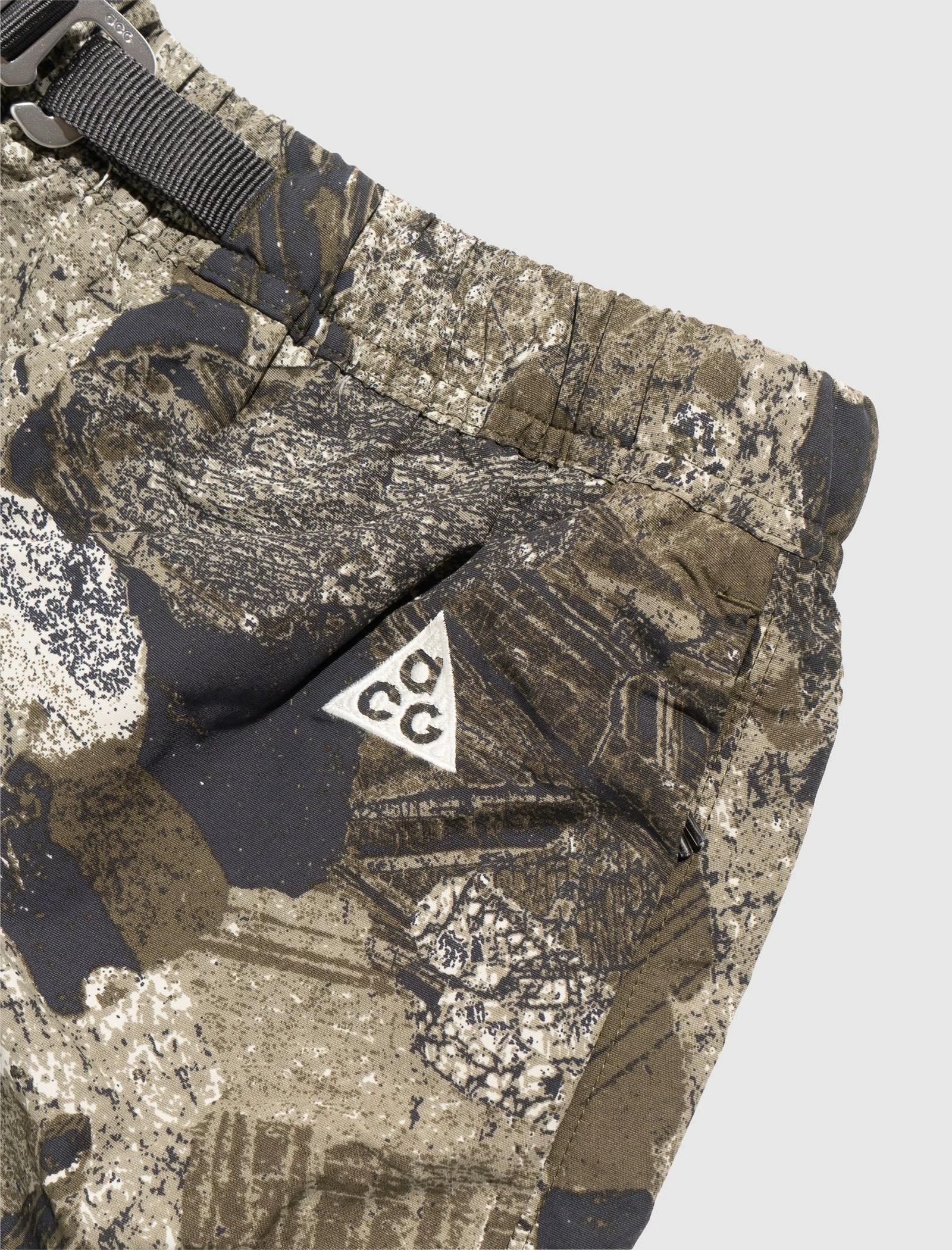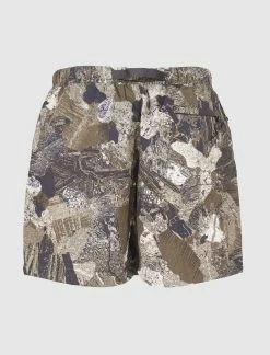 Nylon cargo shorts. Elasticized adjustable belt insert at waistband. Five-pockets. Graphic logo print at front. Camouflage print throughout. – 100% Nylon SKU: DN3949-325