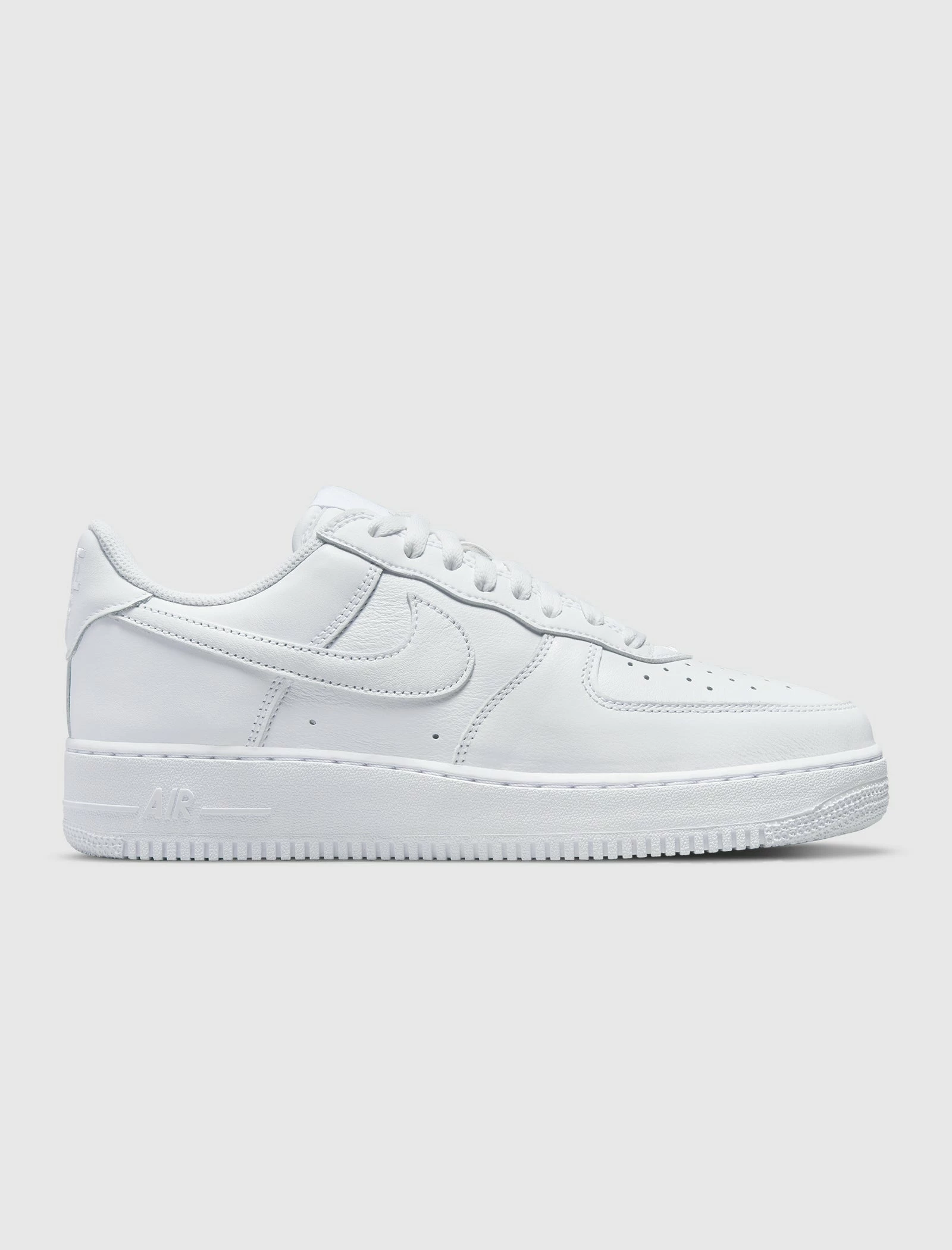 Low top sneakers. Leather overlays around the toe, eyelet panels, and heel counter. Perforated toe box. Leather side panels. Leather heel tab with an embroidered logo. Stitched leather logo on the side panels. Front lacing. Rubber midsole. Rubber outsole. – Leather upper SKU: DJ3911-100