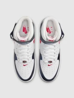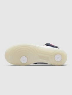 Mid top sneakers. Leather overlays around the toe, eyelets, and heel. Perforated leather toe box. Leather side panels, and collar. Front lacing. Jewel logo emblem on the side panel. Leather velcro strap on the ankle. Embroidered logo on the heel. Rubber midsole. Rubber outsole. – Leather SKU: DH5623-101