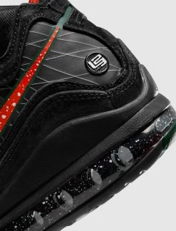 High top sneaker. Suede toe box, lower side panels, eyelet panels, and collar. Flywire cage attached on the side panels. Printed logo on the side panels. Stamped logo emblem attached on the outer left heel. EVA foam midsole with an exposed full-length air unit. Rubber outsole. – Leather upper. SKU: DX8554-001