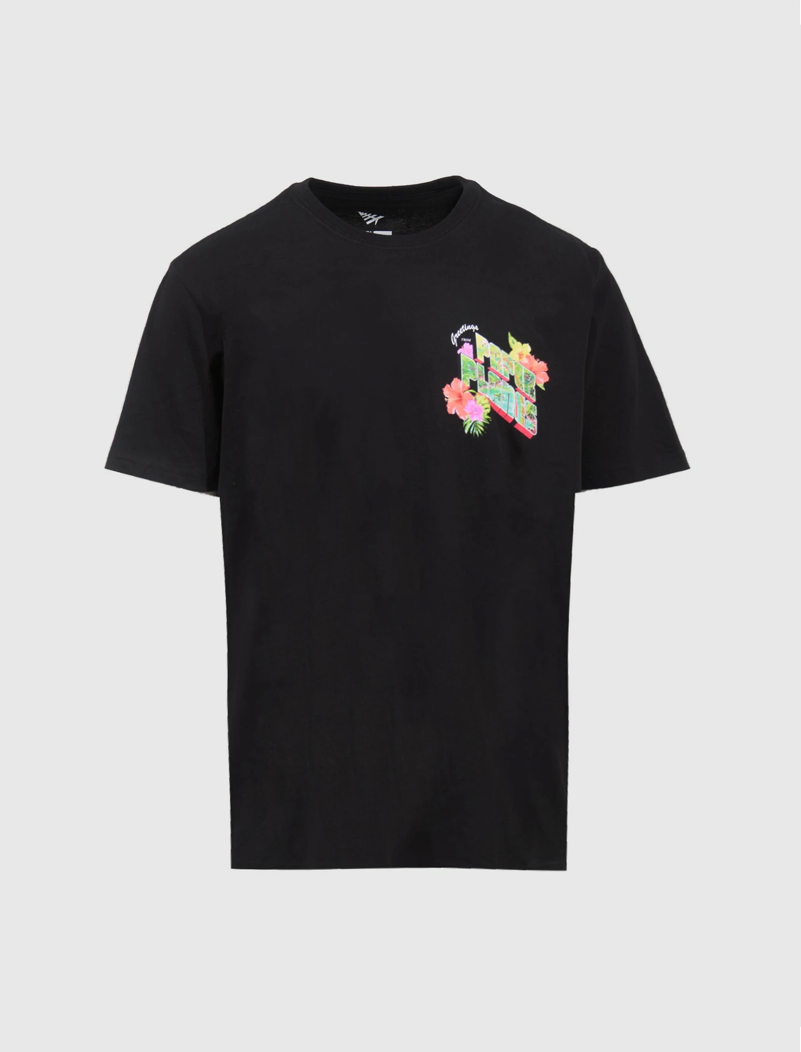 Short sleeve cotton t-shirt. Crewneck. Graphic floral prints and logo text at chest. Graphic logo print at back. – 100% Cotton SKU: 200164-BLK