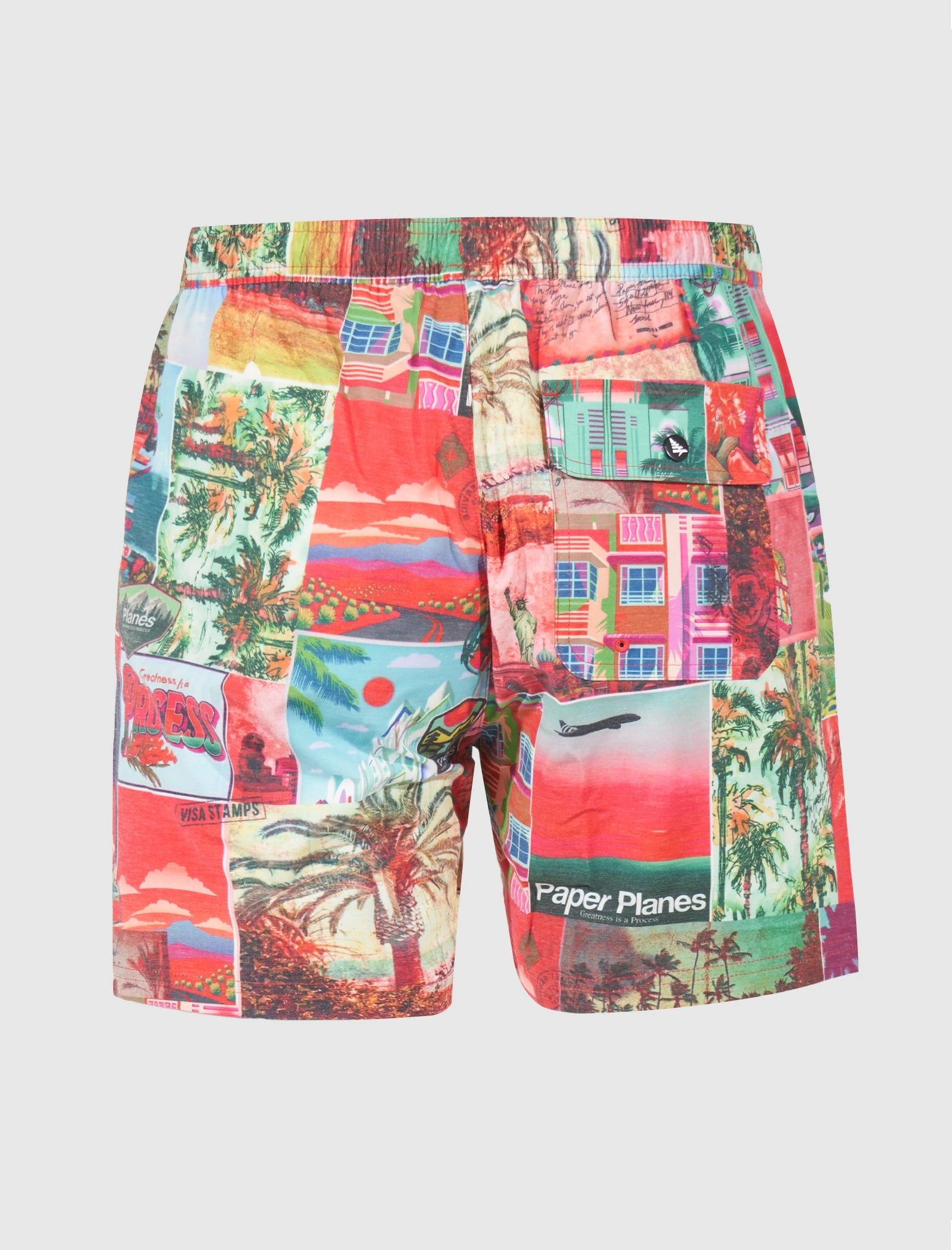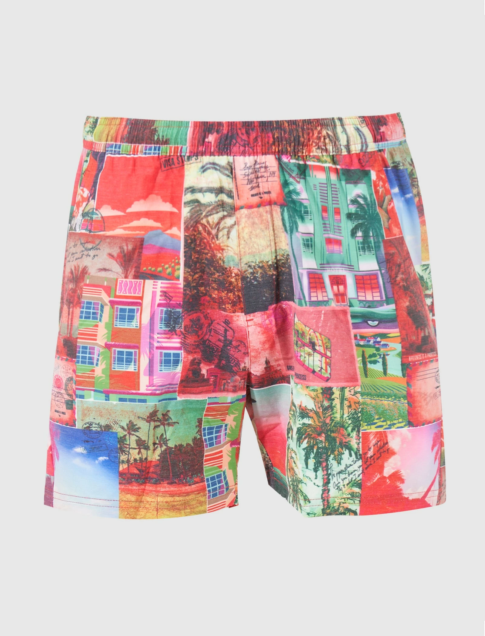 Woven shorts. Adjustable drawstring waistband. Two pockets at sides. Single flap pocket at back. Graphic prints and texts throughout. – 76% Polyester, 20% Cotton, 4% Elastane SKU: 600090-PINK-DELIGHT