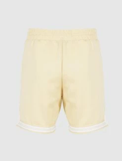 Running shorts. Adjustable drawstring waistband. Two zip pockets at sides. Rubber logo at front. Striped detail trim. – 95% Polyester, 5% Elastane SKU: 600046-SAND