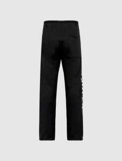 Relaxed-fit cotton-blend sweatpants. Elasticized drawstring waistband. Two pockets at sides. Graphic logo text at side. Single pocket at back. Elasticized cuffs. – 65% Cotton, 35% Polyester SKU: P22W016-BLK