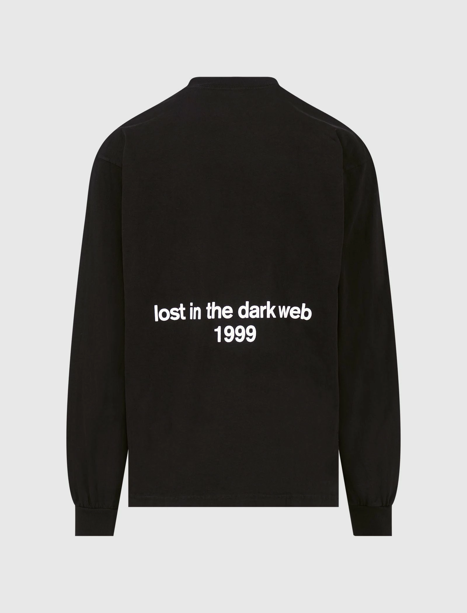 Long sleeve cotton t-shirt. Crewneck. Graphic print and logo text at front. Graphic text at back. – 100% Cotton SKU: P22F007-BLACK
