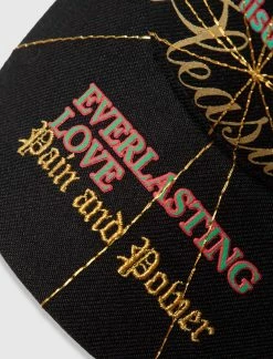 Canvas hat. Curved brim. Printed and embroidered graphic on the front and brim of the hat. Snapback closure. – Cotton SKU: P21W057-BLACK