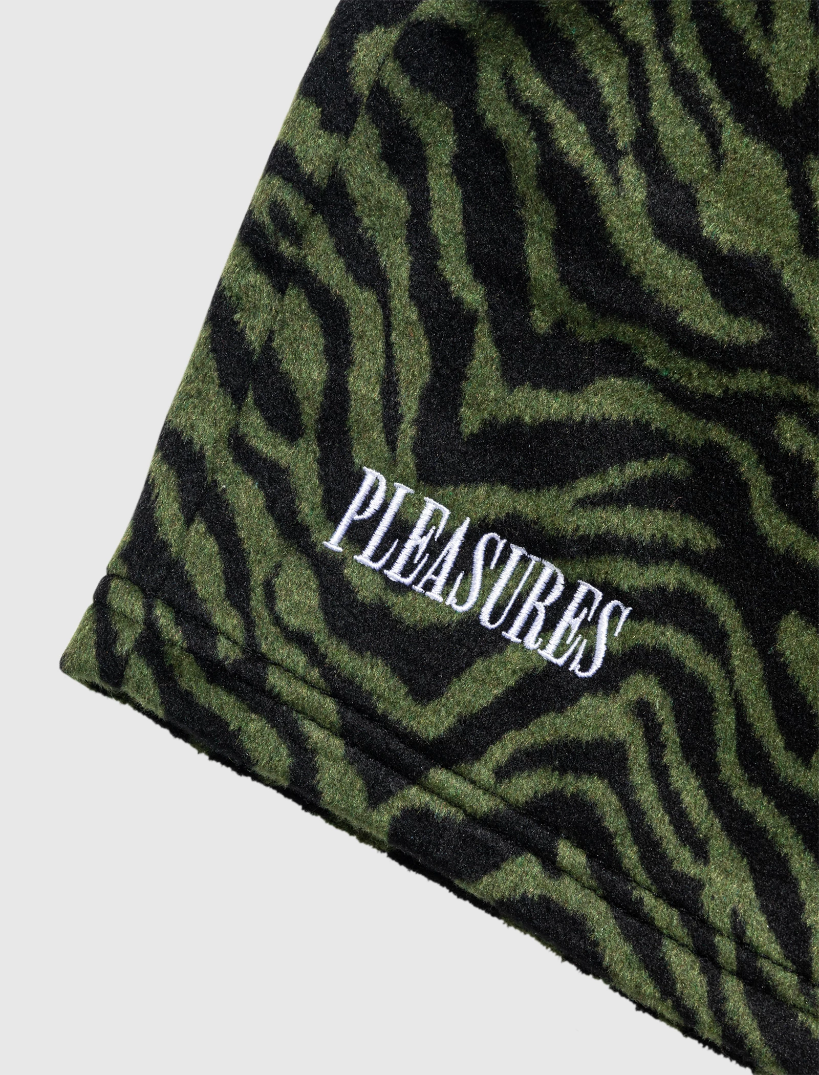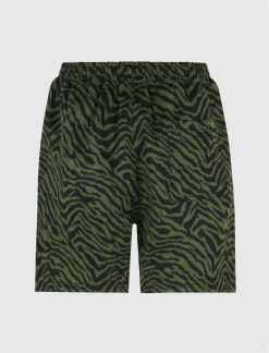 Wool-blend shorts. Elasticized drawstring waistband. Three pockets. Animal pattern throughout. Embroidered logo text at side. – 80% Polyester, 20% Wool SKU: P22SP002-GREEN