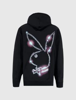 Cotton fleece hoodie. Adjustable drawstrings at the hood. Logo printed on the front. Kangaroo front pocket. Graphic printed on the back. Ribbed cuffs and hem. – Cotton SKU: P21PB009-BLACK
