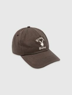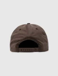 Woven hat. Curved brim. Embroidered logo text, print and text at front. Embroidered eyelets at top. Adjustable snapback closure. – 100% Cotton SKU: P22PB046-BROWN