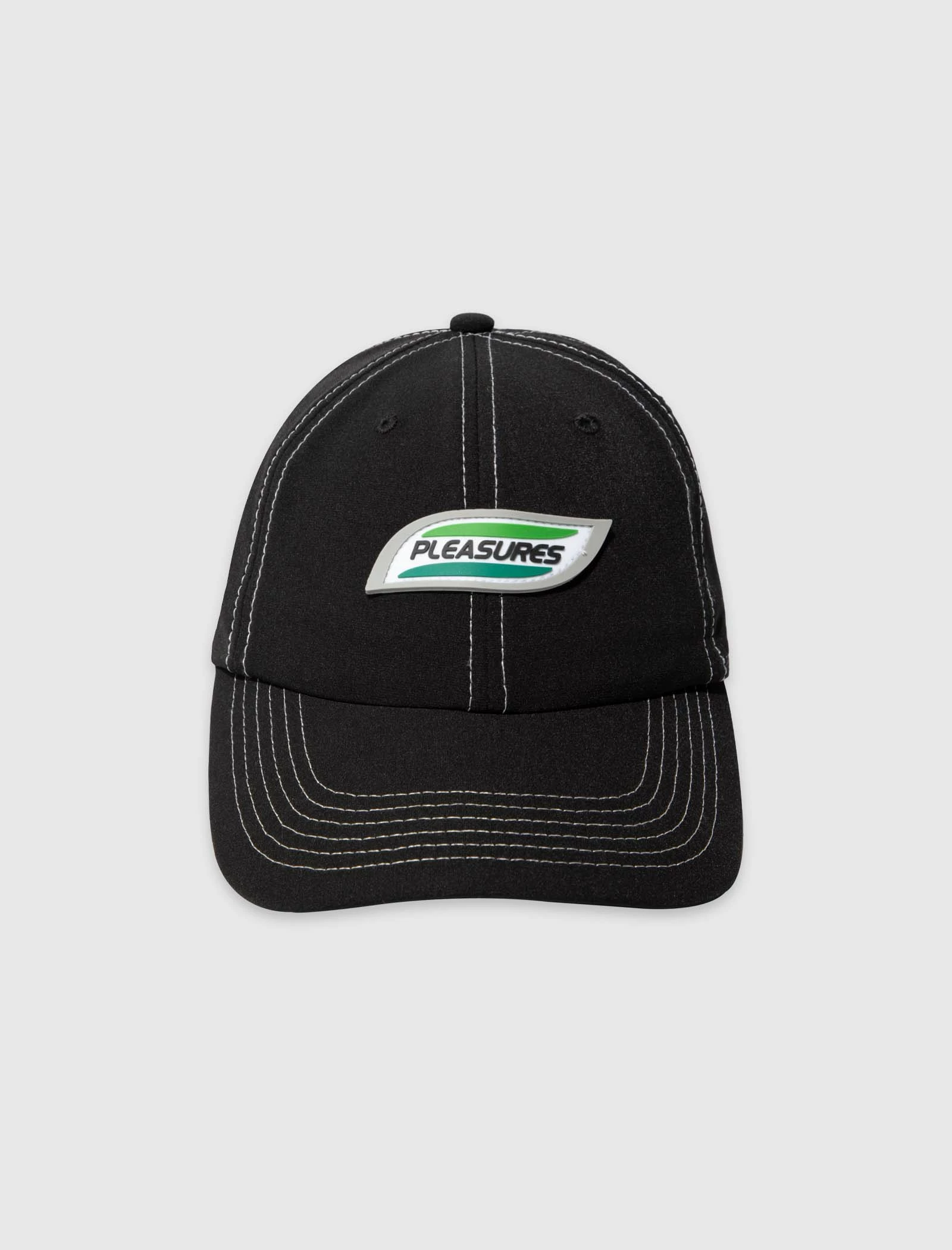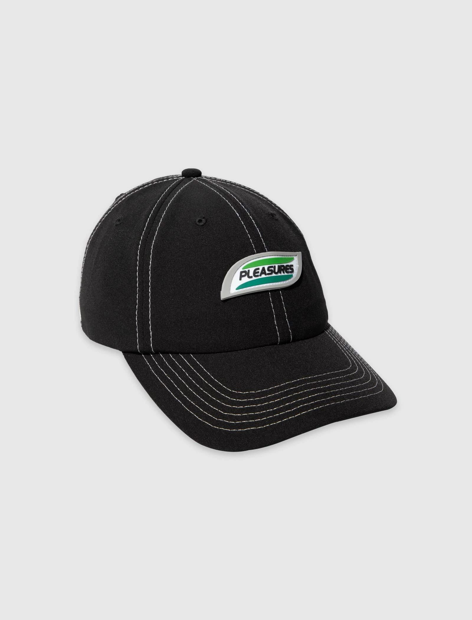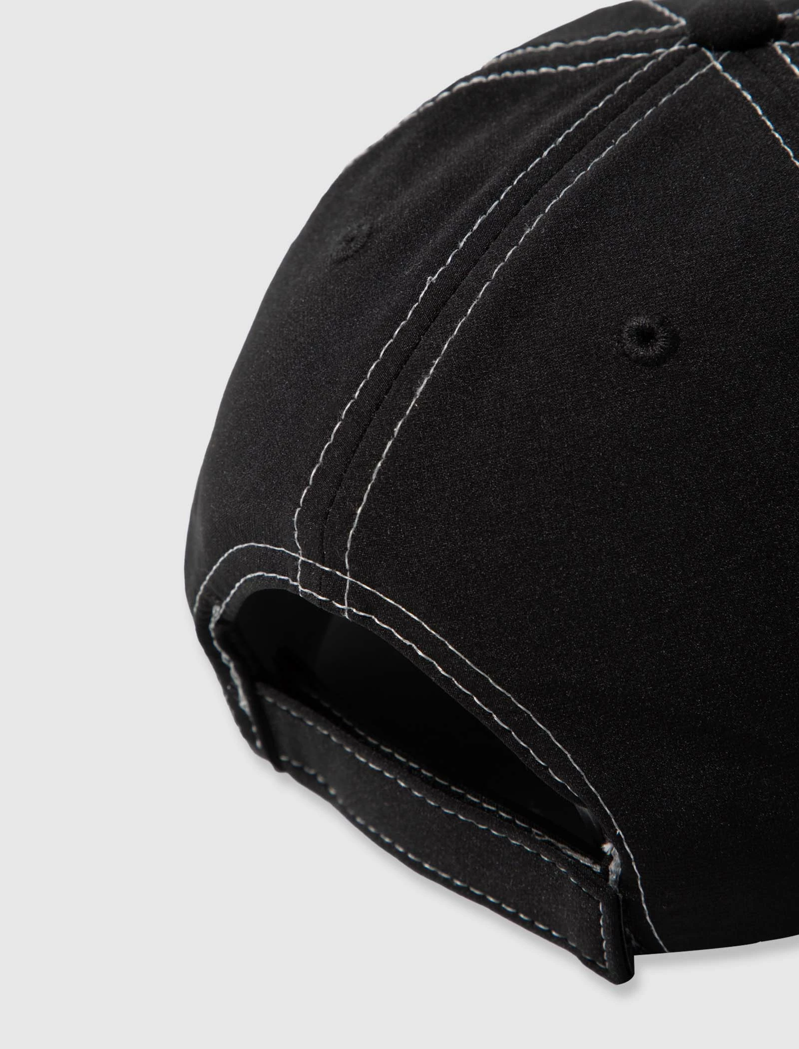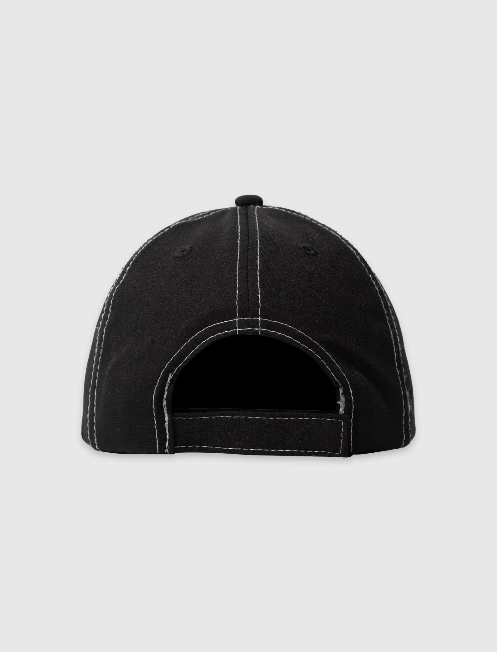 Nylon hat. Curved brim. Rubberized logo patch on the front. Velcro back strap. – Nylon SKU: P22SP063-BLACK