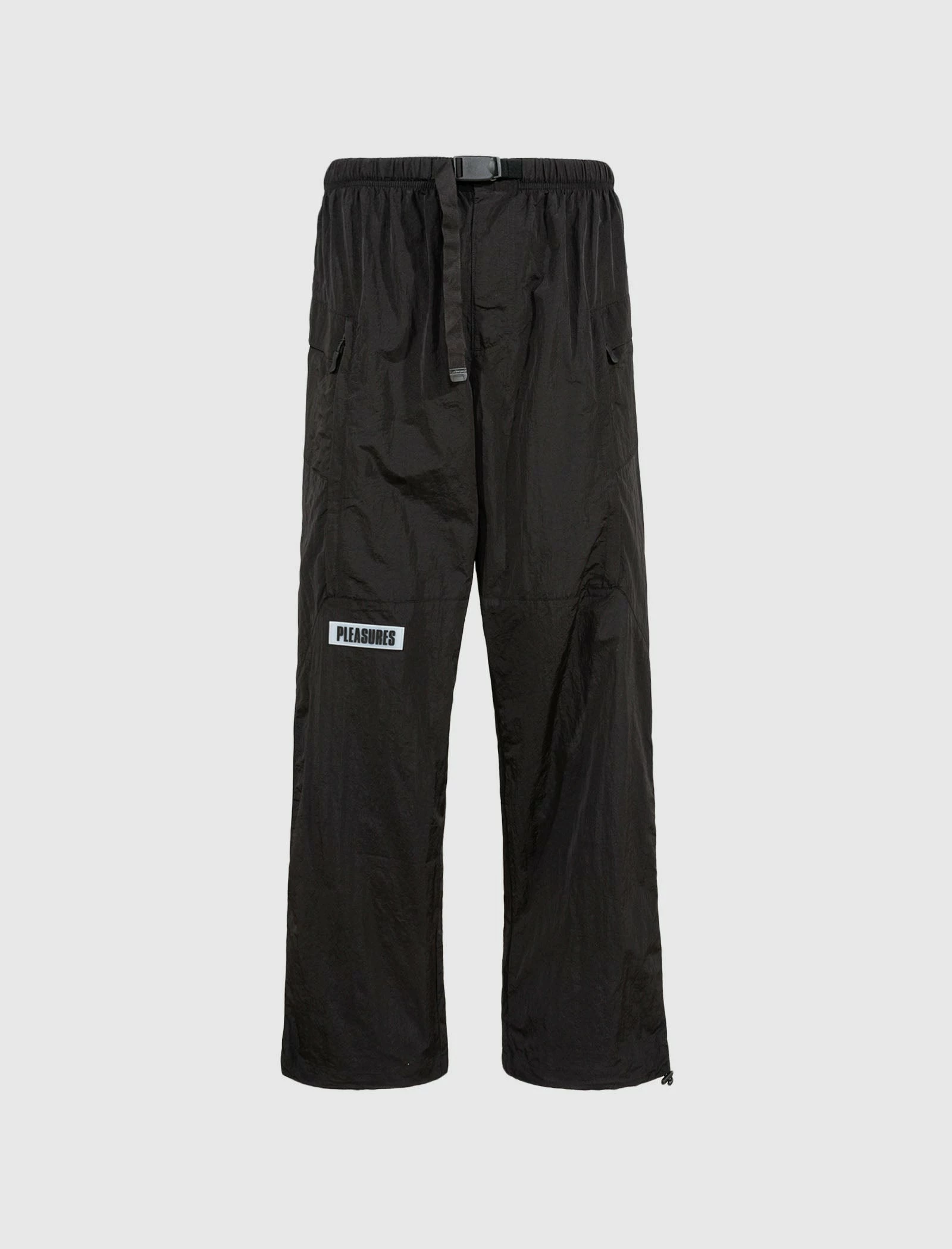 Nylon wide-leg pants. Elasticized waistband featuring belt. Logo patch at front. Multiple pockets. – 100% Nylon SKU: P22W041-BLK