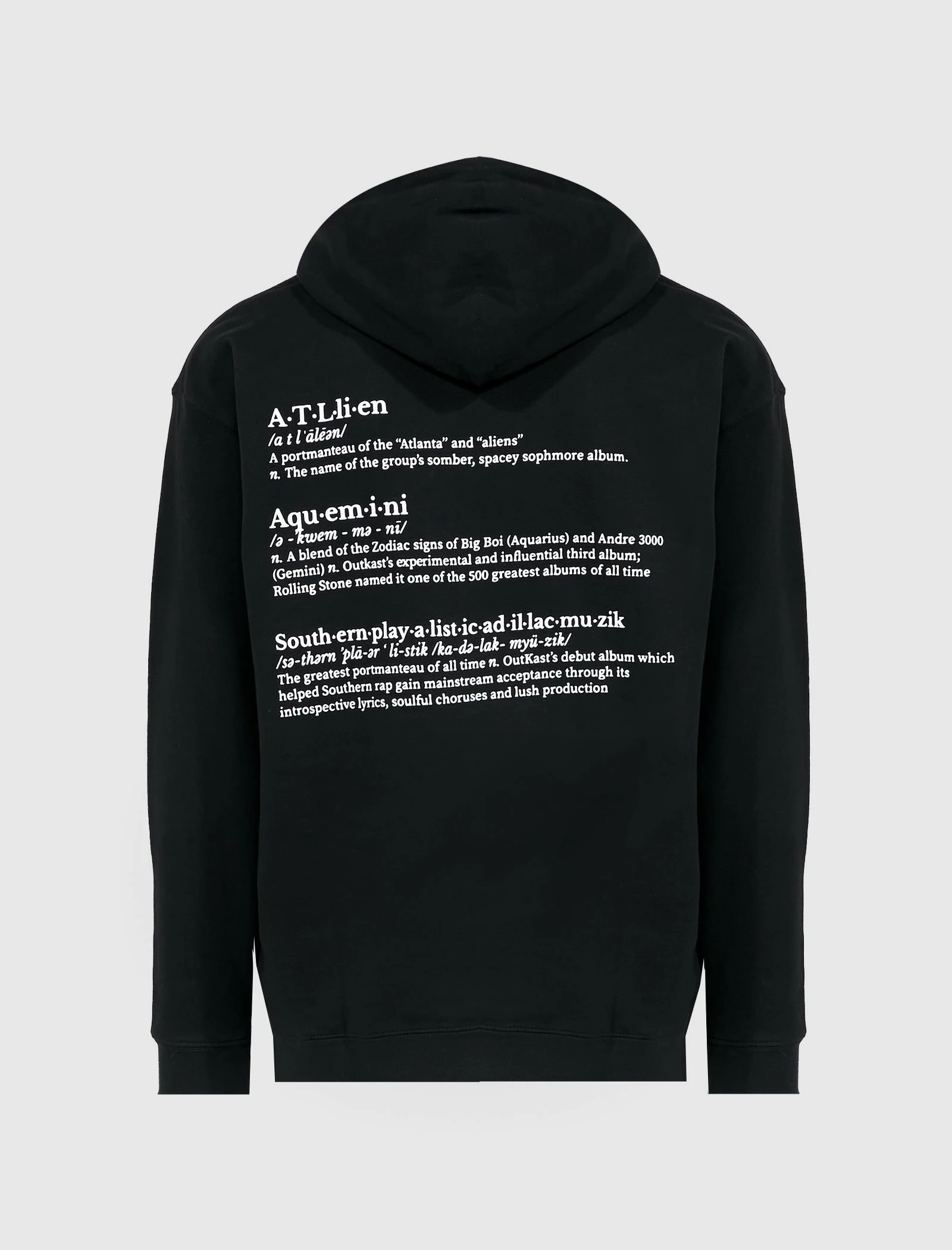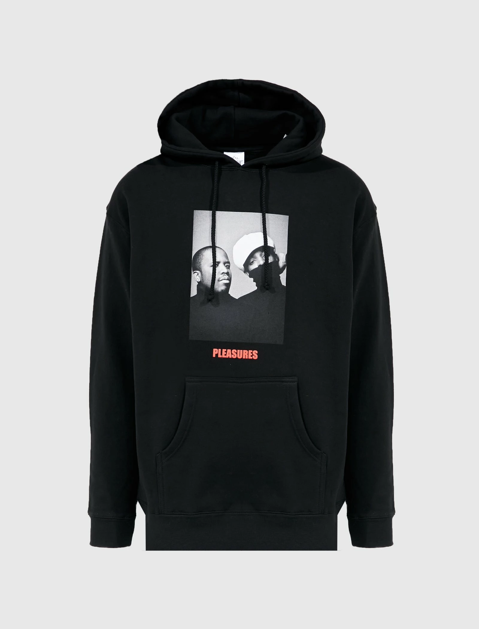 Pullover hoodie. Drawstrings at the hood. Graphic printed on the front. Kangaroo front pocket. Graphic printed on the back. Ribbed cuffs and hem. – Cotton SKU: P22SP060-BLACK