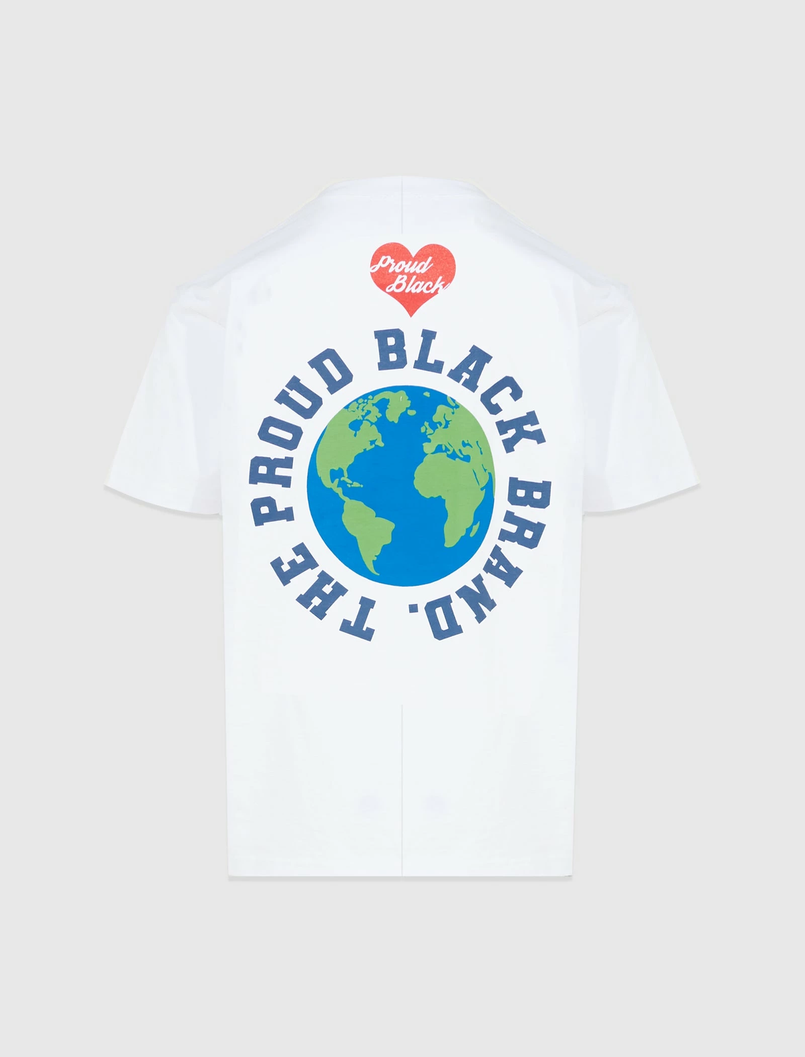 Short sleeve cotton t-shirt. Ribbed crewneck collar. Printed logo at left chest. – Cotton SKU: PBB-WORLD-TEE-WHT