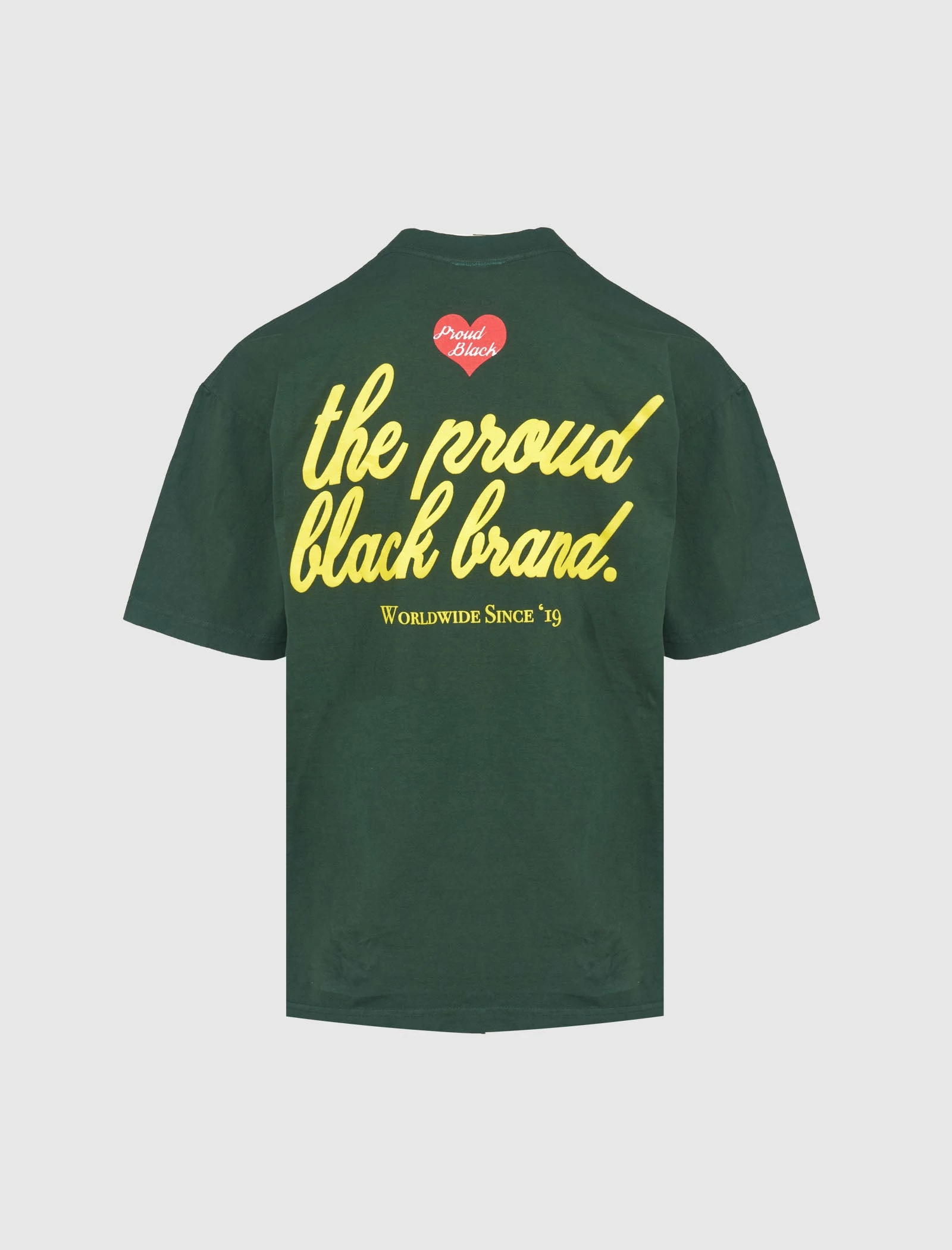 Short sleeve cotton t-shirt. Crewneck. Graphic logo text at chest and back. Graphic print and text at back. – 100% Cotton SKU: PBB-SIGNATURE-TEE-GRN