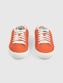 Low top sneaker. Corduroy upper. Front lacing. Leather logos stitched on the side panel. Corduroy tongue with a stitched logo tag. Leather back patch with a stamped logo. Rubber midsole. Rubber outsole. – Corduroy upper SKU: 38109902
