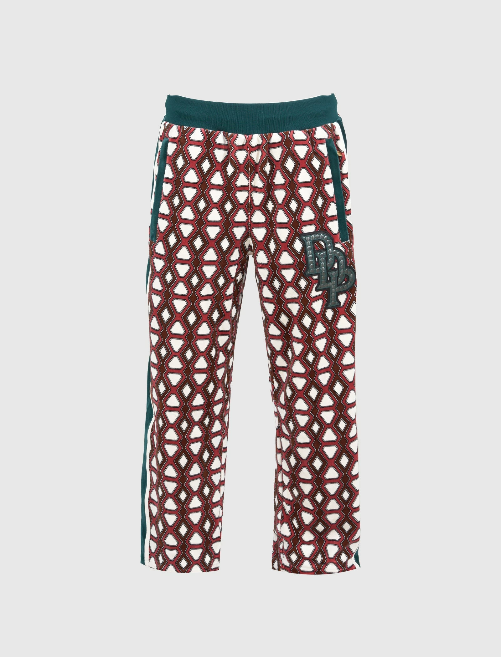 Track pants. Adjustable drawstring waistband. Two zip pockets at sides. Single pocket at back. Velvet trim. Graphic print throughout. Embroidered logo initials at front. – 73% Cotton, 27% Polyester SKU: 53734893