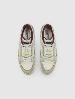 Low top sneakers. Leather upper. Leather overlays around the toe, eyelet panels, collar, and heel counter. Front lacing. Leather tongue. Leather logo patches on the side panels. Stamped logo on the heel. Rubber midsole. Rubber outsole. Discolored accents all throughout. – Leather upper. SKU: 38423701
