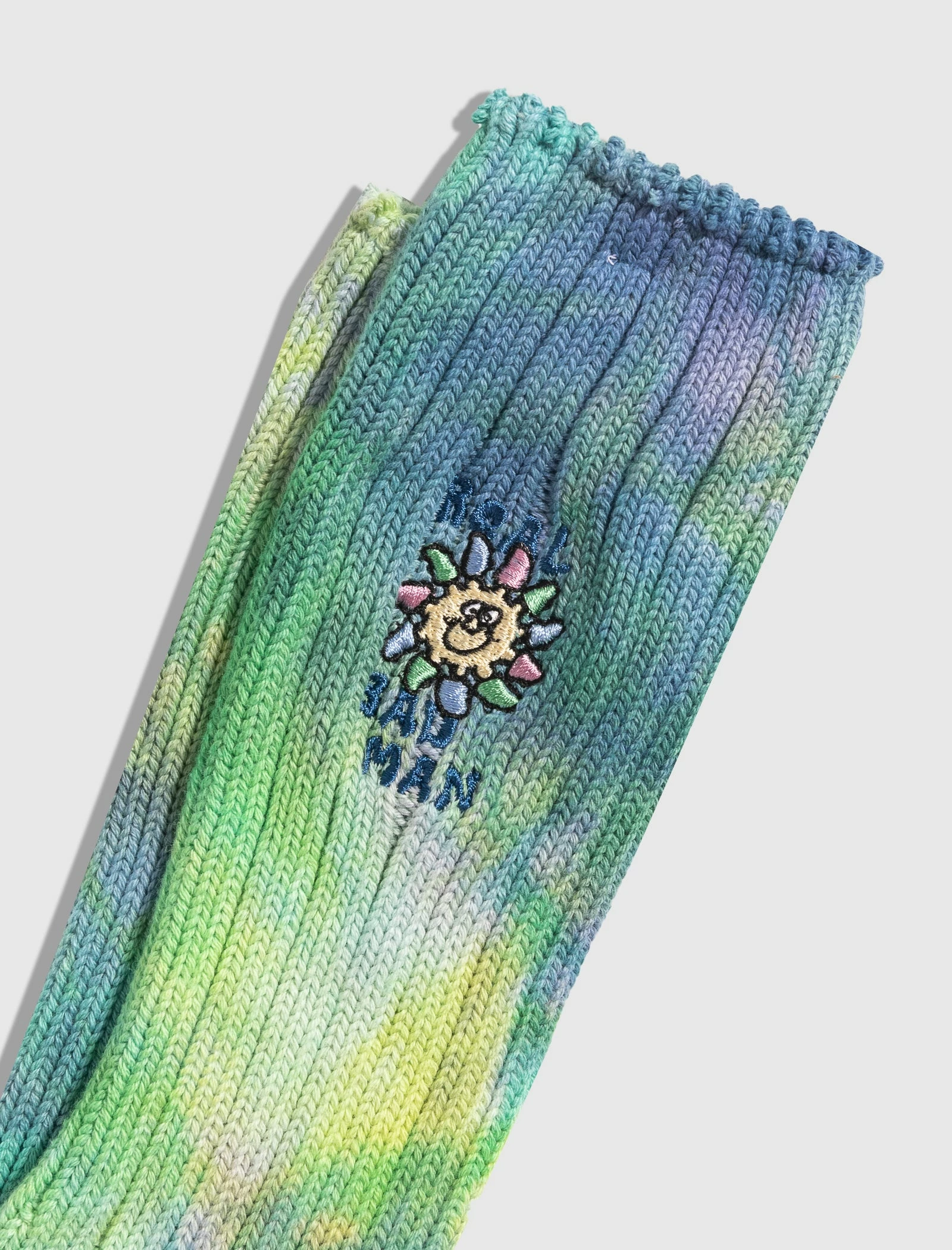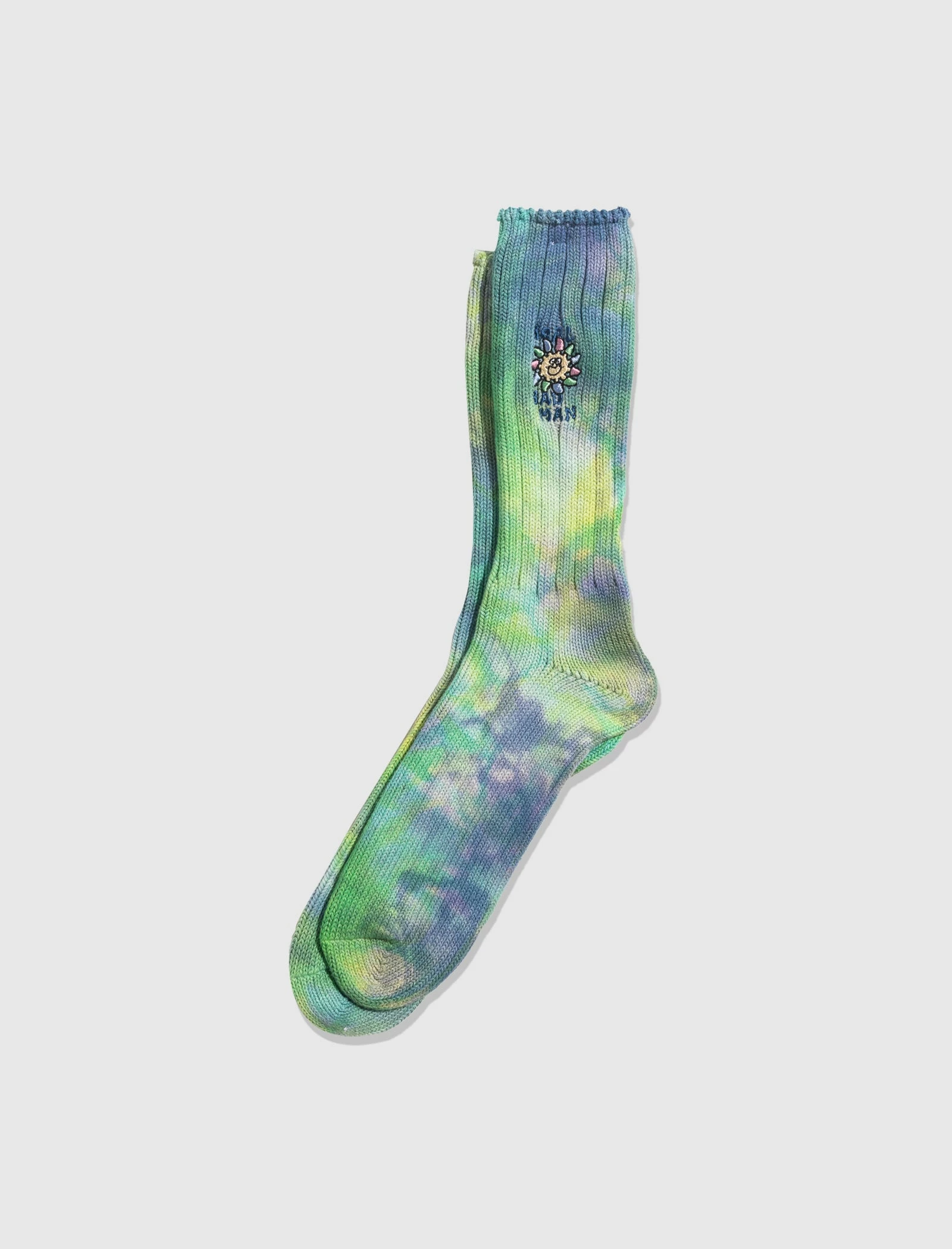 Knit socks. Tie-dye print throughout. Embroidered logo text and pattern at side. – 100% Cotton SKU: RBM08011