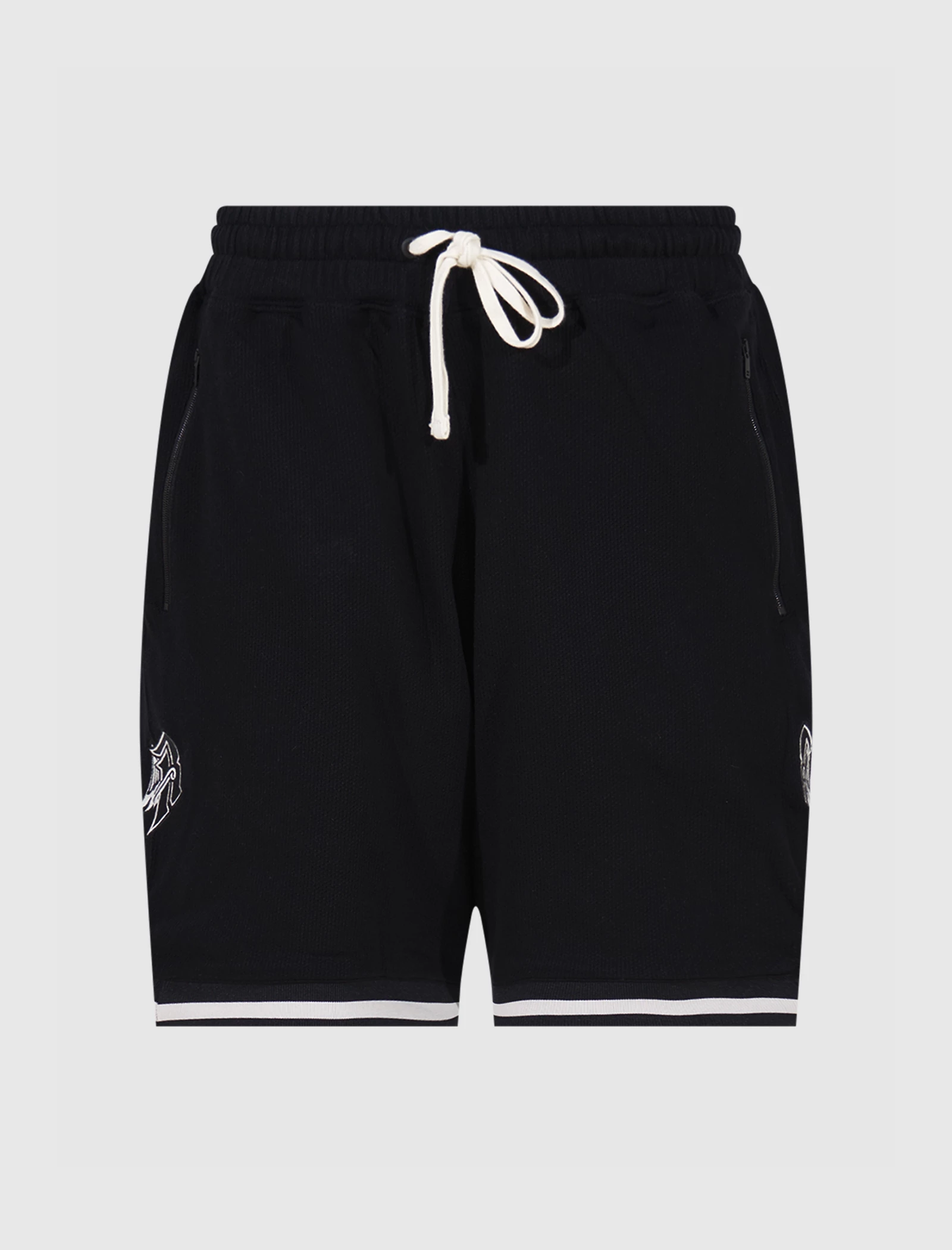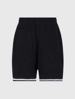 Cotton basketball shorts. Adjustable drawstring waistband. Four pockets. Appliqués at sides. – 100% Cotton SKU: M09032-BLACK