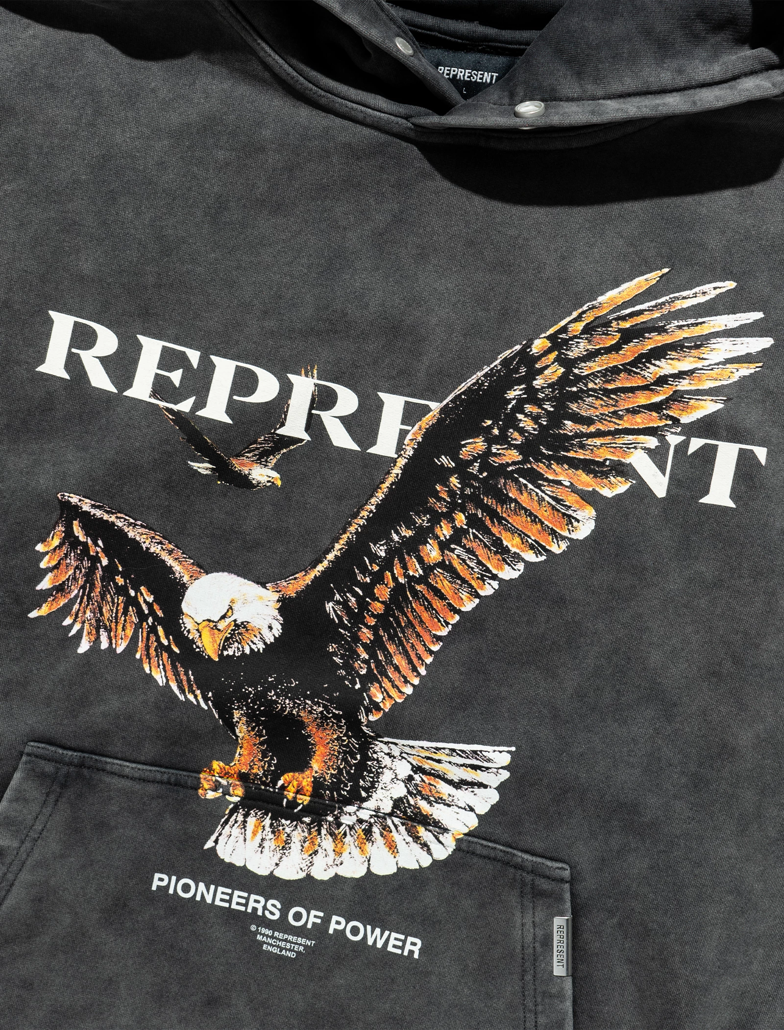 Pullover hoodie. Fixed hood. Graphic logo text and print at front. Kangaroo pocket at front. Ribbed cuffs and hem. – 100% Cotton SKU: M04179