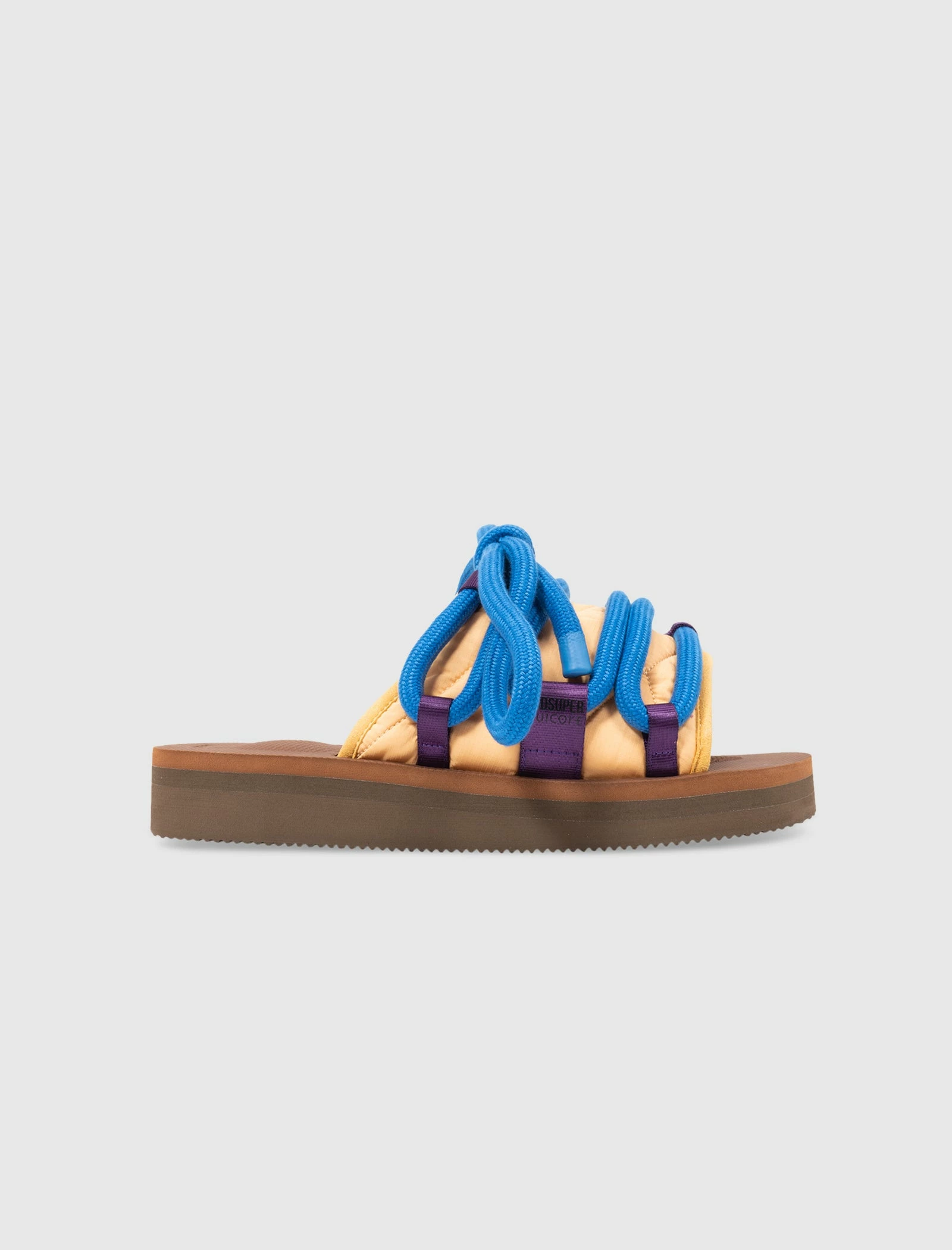 Slides. Padded polyester textile top strap. Thick nylon lacing. Nylon tape lace loops. EVA foam footbed. EVA foam midsole. Rubber outsole. – Polyester upper SKU: OG-330ABKS-BEIGE