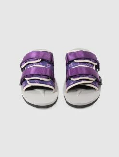 Nylon sandal. Paisley graphic pattern throughout the upper. Double nylon tape straps along the top of the upper with velcro closures. Molded foam footbed, EVA foam midsole. – Polyester upper SKU: OG-056CAB-PT03-PURP