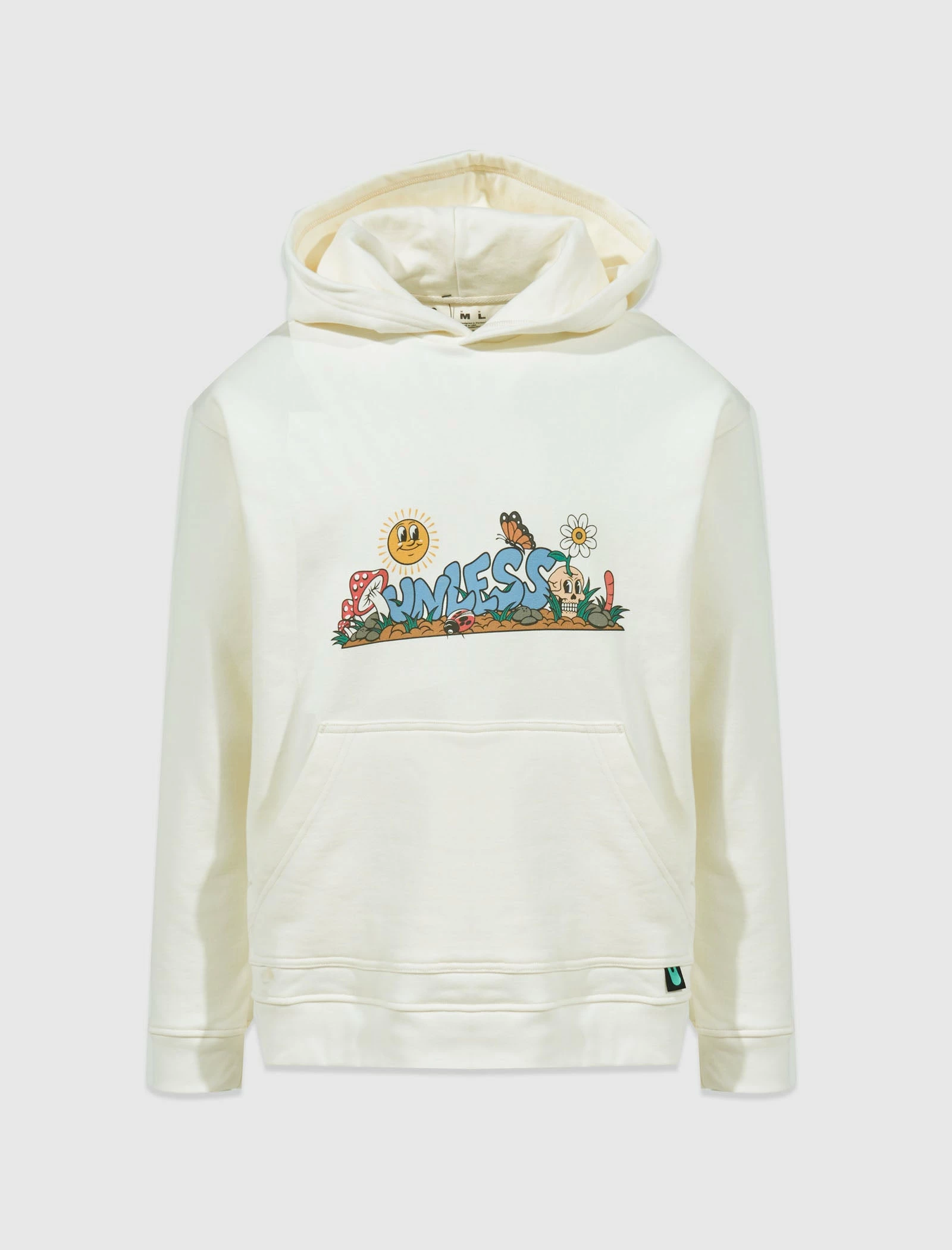 Pullover cotton hoodie. Fixed hood. Graphic garden print featuring logo text at chest. Kangaroo pocket at front. Ribbed cuffs and hem. – 100% Cotton SKU: ESS-HOODIE-CRM