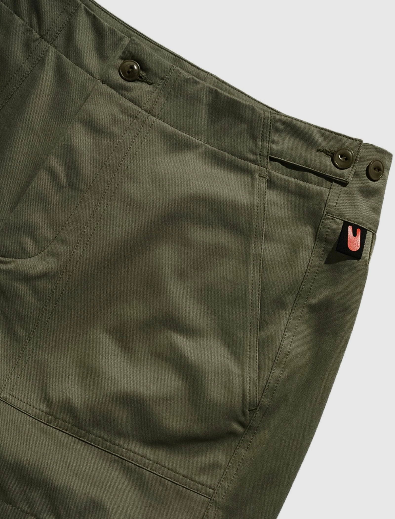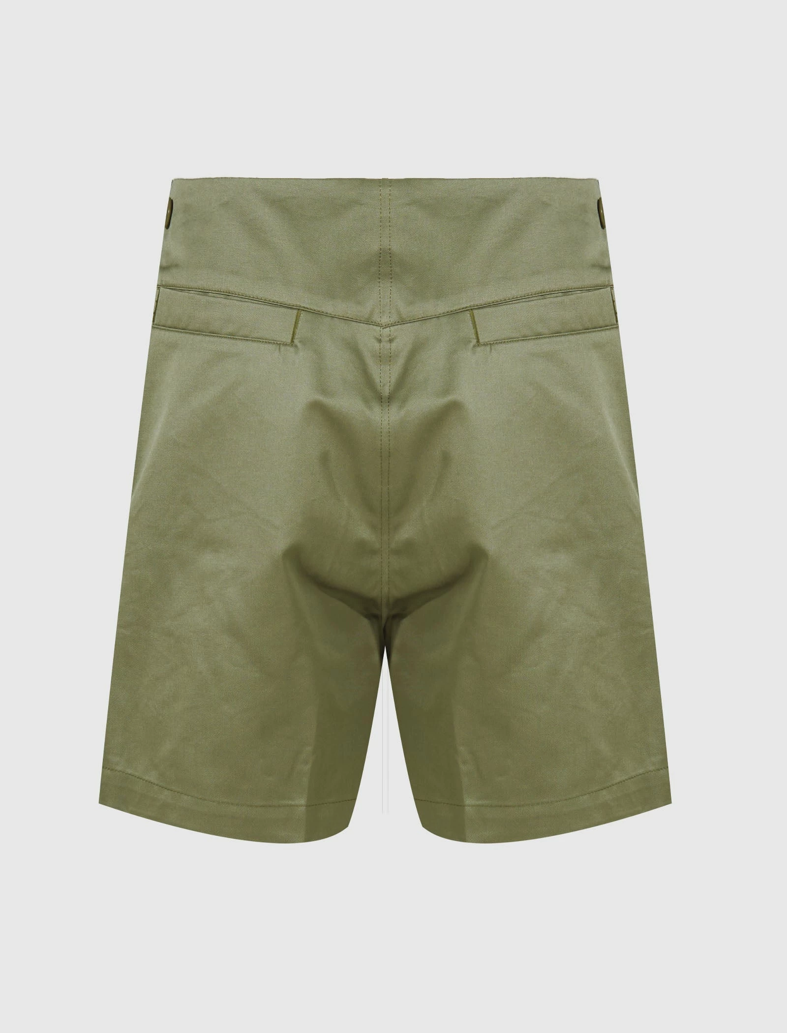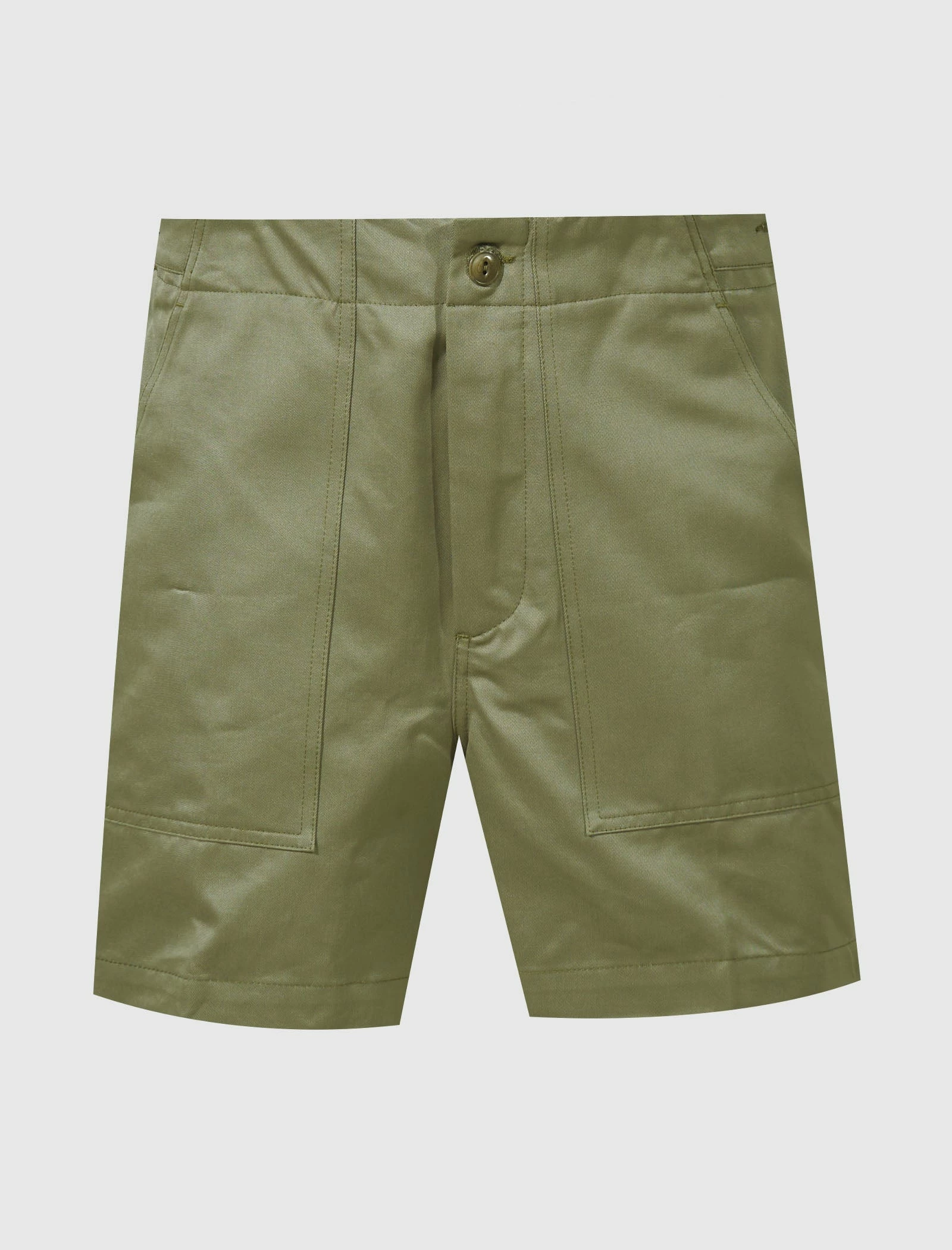 Woven shorts. Button accents at waist. Two pockets at sides. Concealed pockets at back featuring woven brand label. – 100% Cotton SKU: WRK-SHORTS-BL